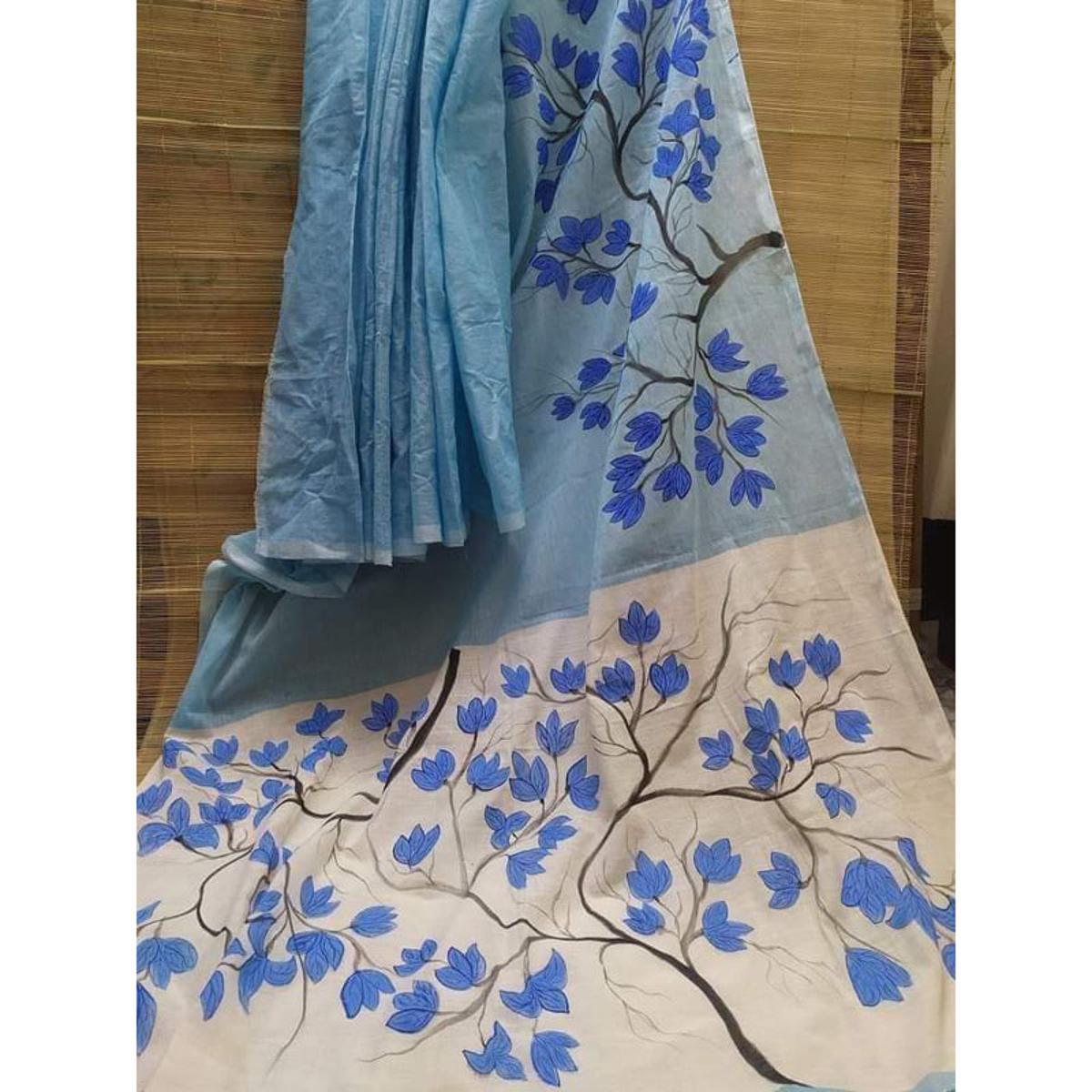 Hand Print Saree Ash Color Collection Fashionable Stylish and Comfortable, Half Silk Saree For Women