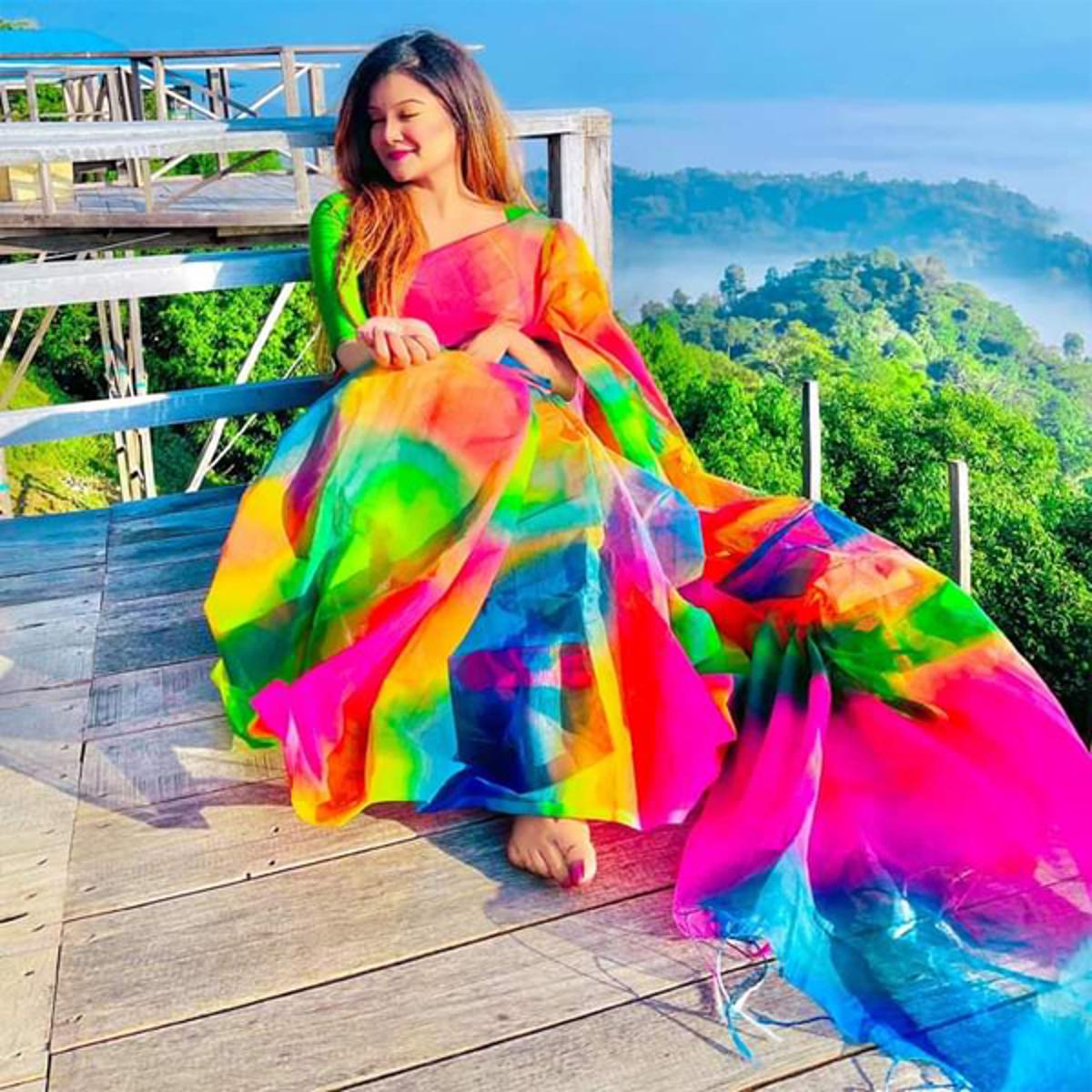 Hand Print Saree New Rainbow Colors Collection Fashionable Stylish and Comfortable, Half Silk Saree For Women - Pink