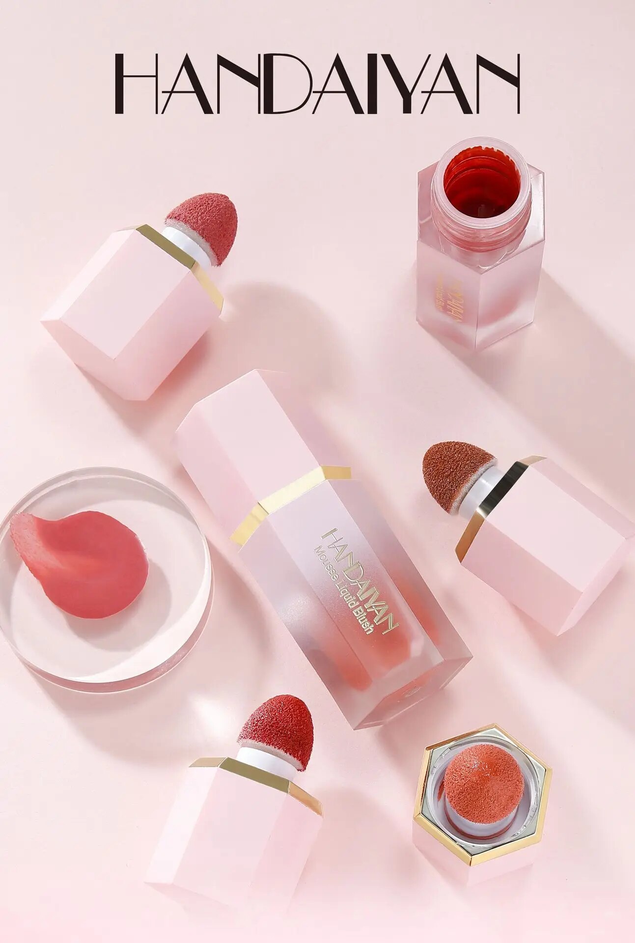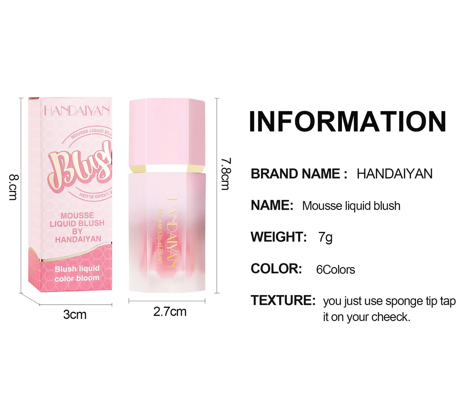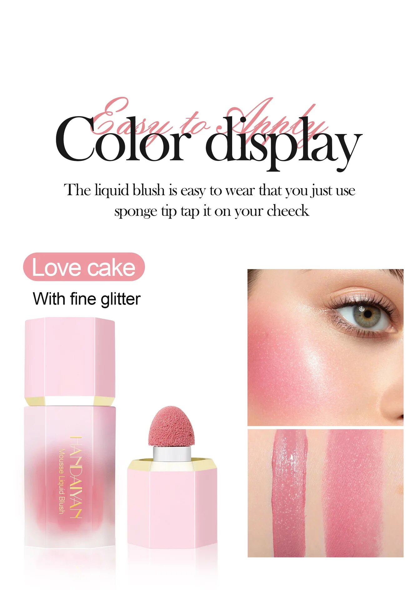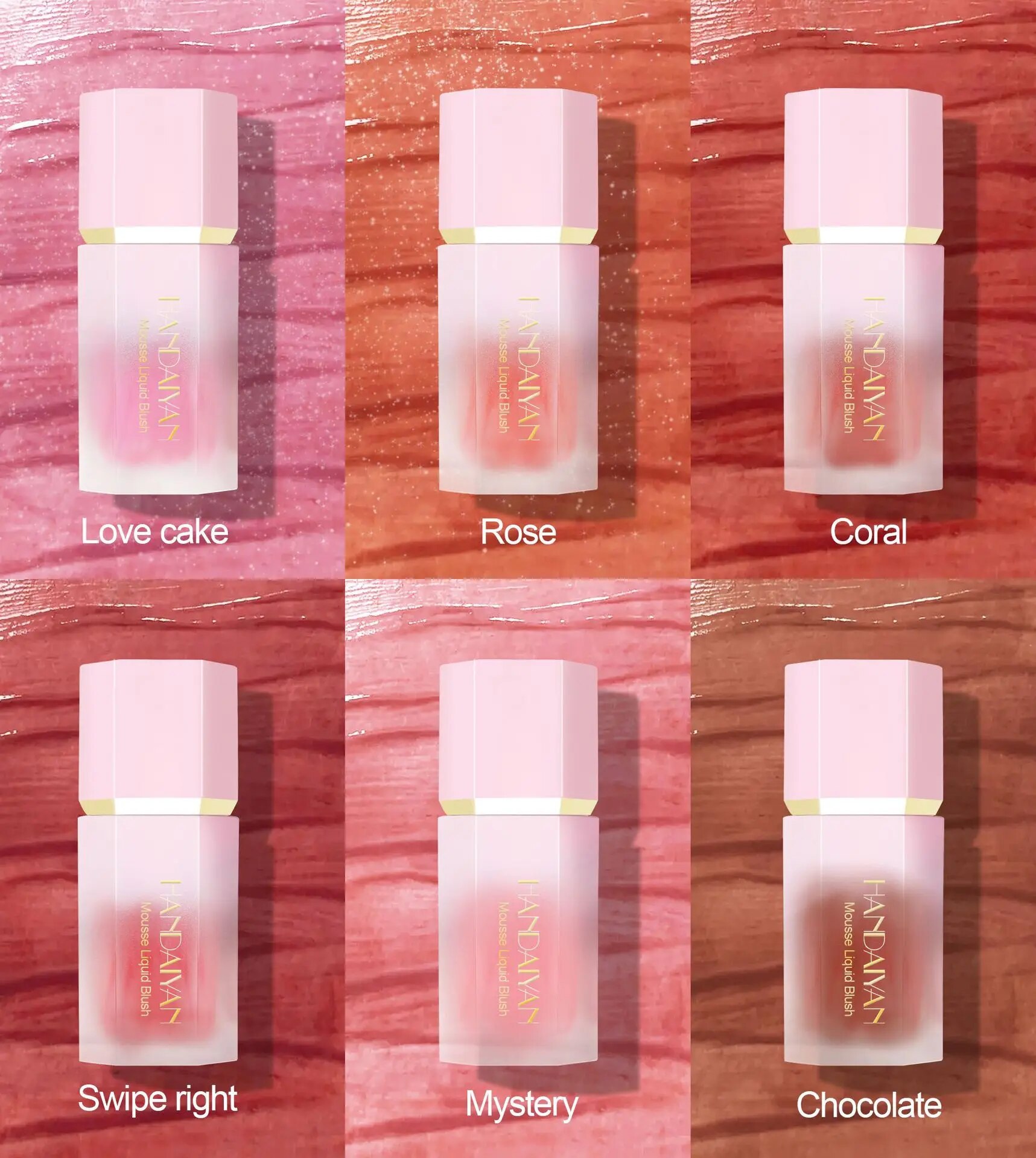 HANDAIYAN 6 Colors Liquid Blush Cosmetics Natural Long Lasting Makeup Blusher Rare Liquid Blush Face Pigment Natural Cream Cheek Tint)