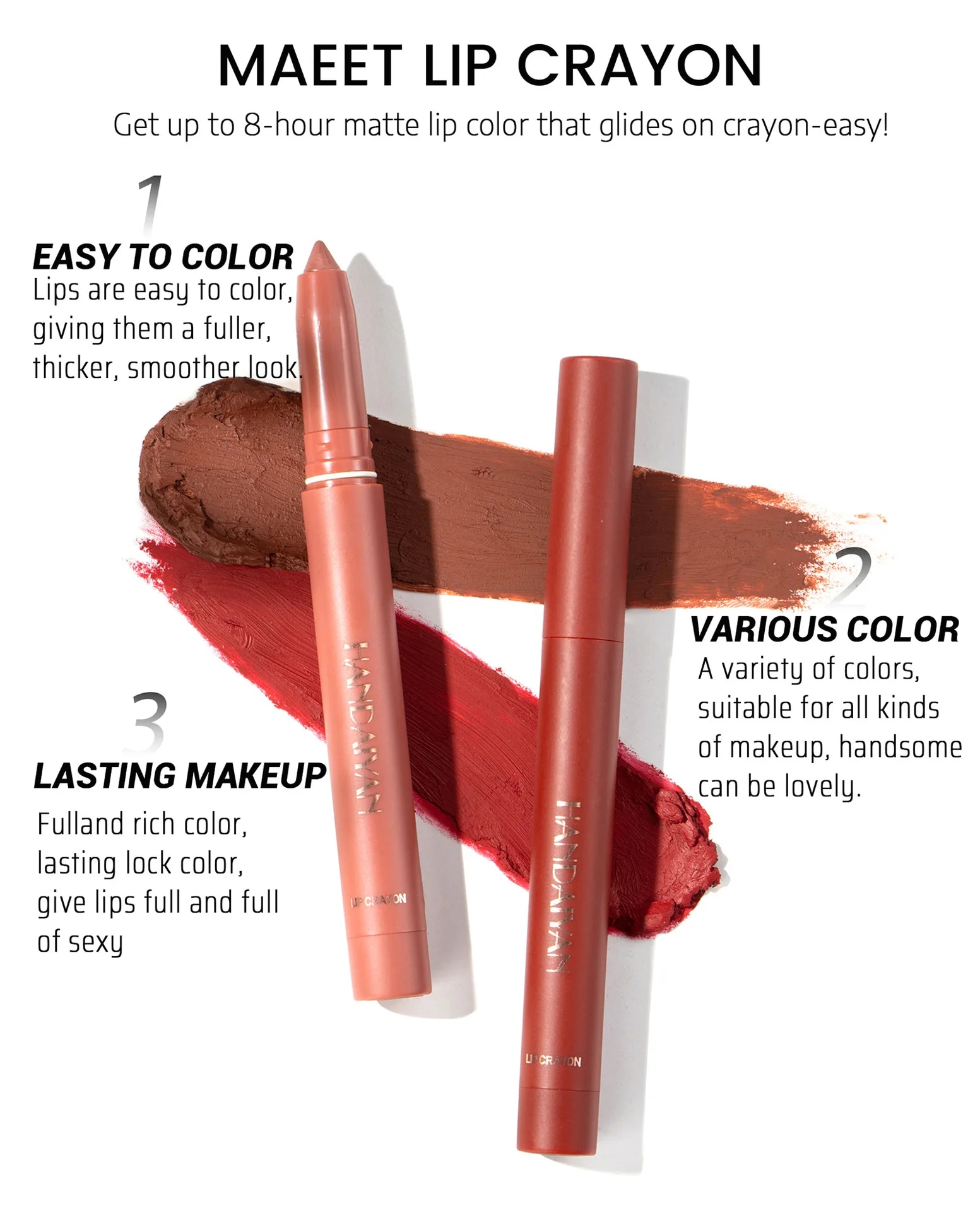 হান্দাইয়ান 6Pcs ম্যাট লিপ ক্রেয়ন 100% একেবারে নতুন মানের