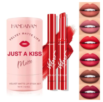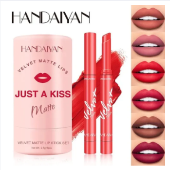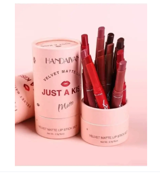 Introducing the Handaiyan Just a Kiss Velvet Matte 8 Pcs Lipstick Set, perfect for any makeup lover! This set features 8 stunning shades of velvet matte lipsticks, each with a unique name and number. The formula is long-lasting and provides a smooth, velvety finish that will leave your lips feeling soft and moisturized. The set includes a range of shades, from bold and bright to subtle and neutral, making it perfect for any occasion. Whether you're going for a bold look or a more natural one, this set has got you covered. The Handaiyan brand is known for its high-quality makeup products, and this lipstick set is no exception. Add this set to your makeup collection today and elevate your look to the next level!