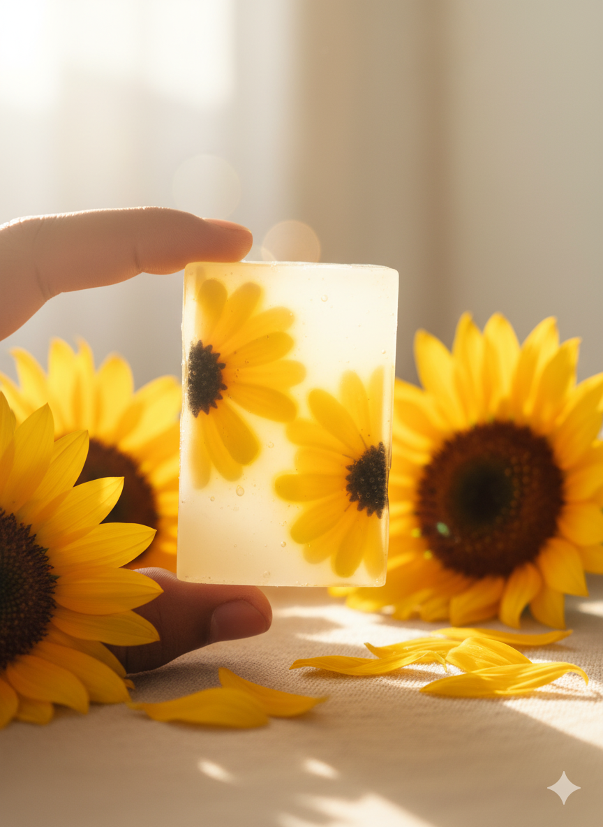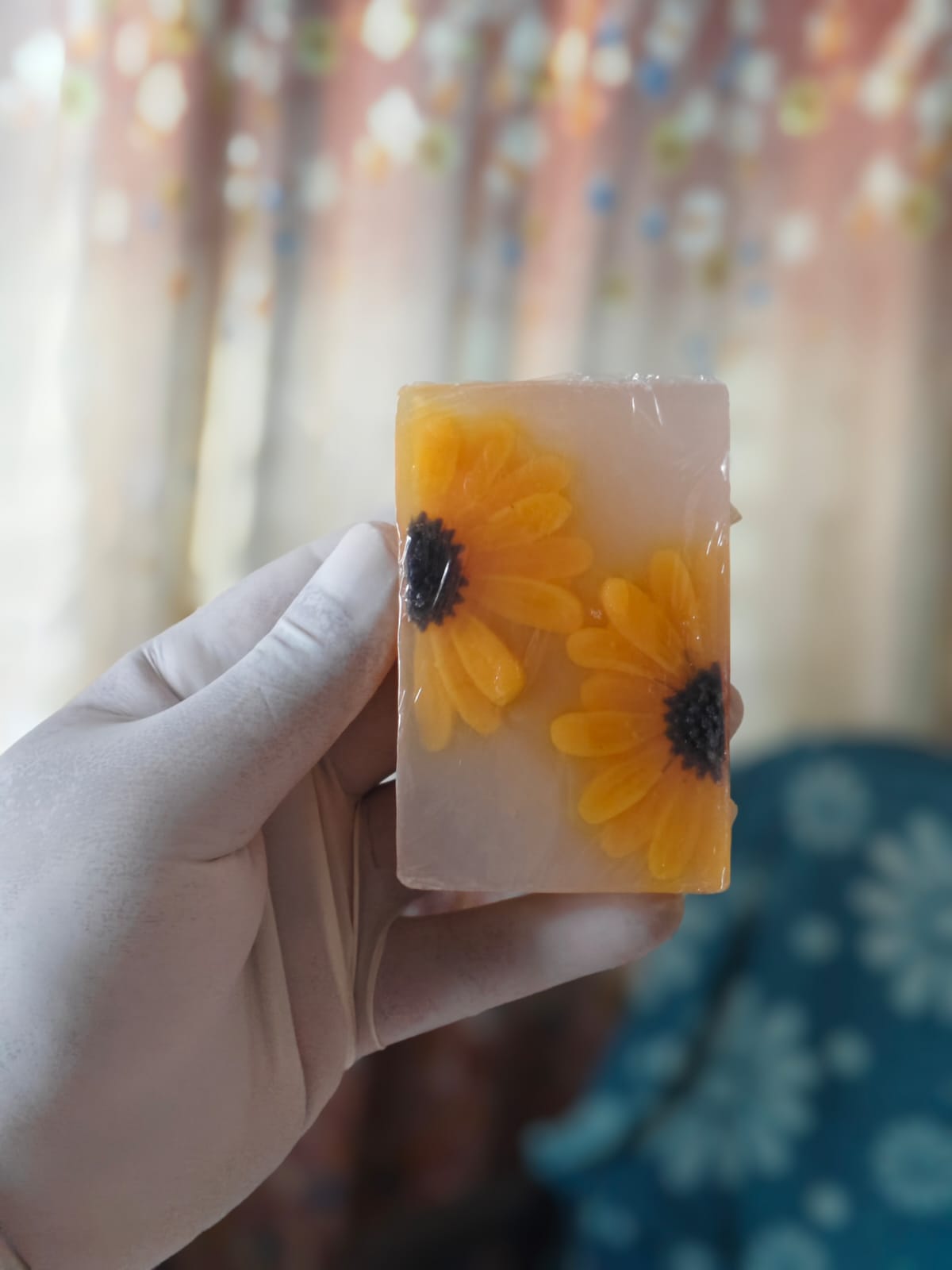 Fall in love with the simplicity of Handmade Sunflower Glycerine Soap – 100gm. Its clear, plant-based formula gently cleanses impurities while locking in hydration. Perfect for daily use, it restores your skin’s natural balance with a fresh, floral scent.