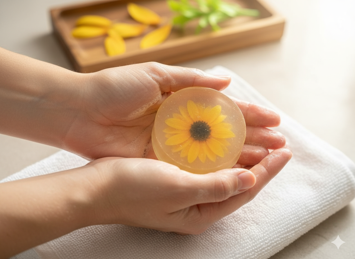 Handmade Sunflower Glycerine Soap – 60gm | Brightening and Moisture-Locking Formula