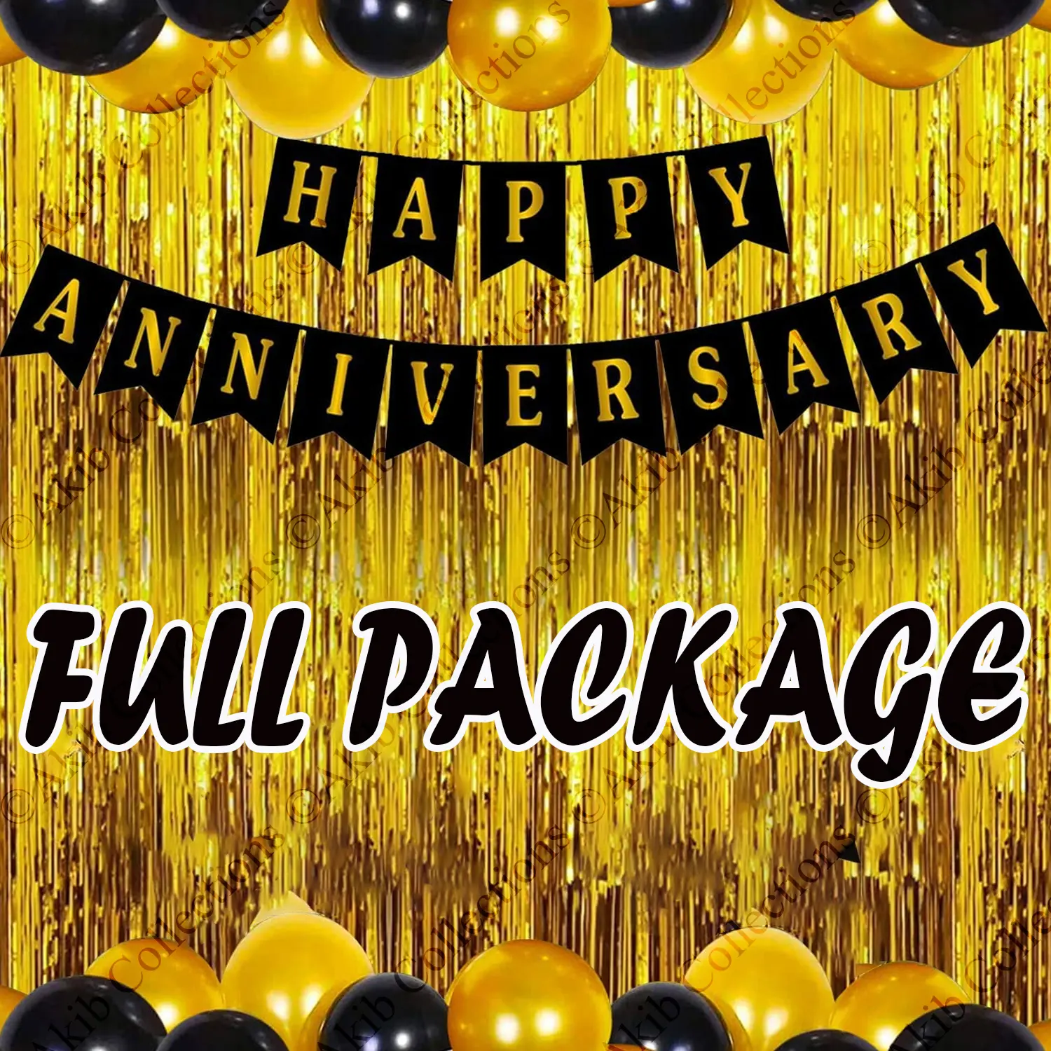 Happy Anniversary Full Package (Balloon + Banner + Foil Backdrop Combo) - Multicolor