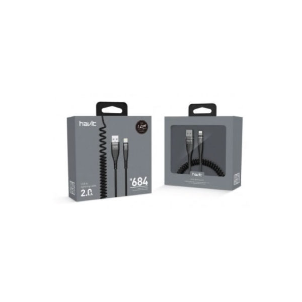 The USB cable is designed for reliable data transfer and provides high-speed charging devices.The flexible spiral cord is easy to handle, stretching to the length you want.Quality material will satisfy the highest requirements.Havit H684 1.2M 2.0A Lightining Data Cable