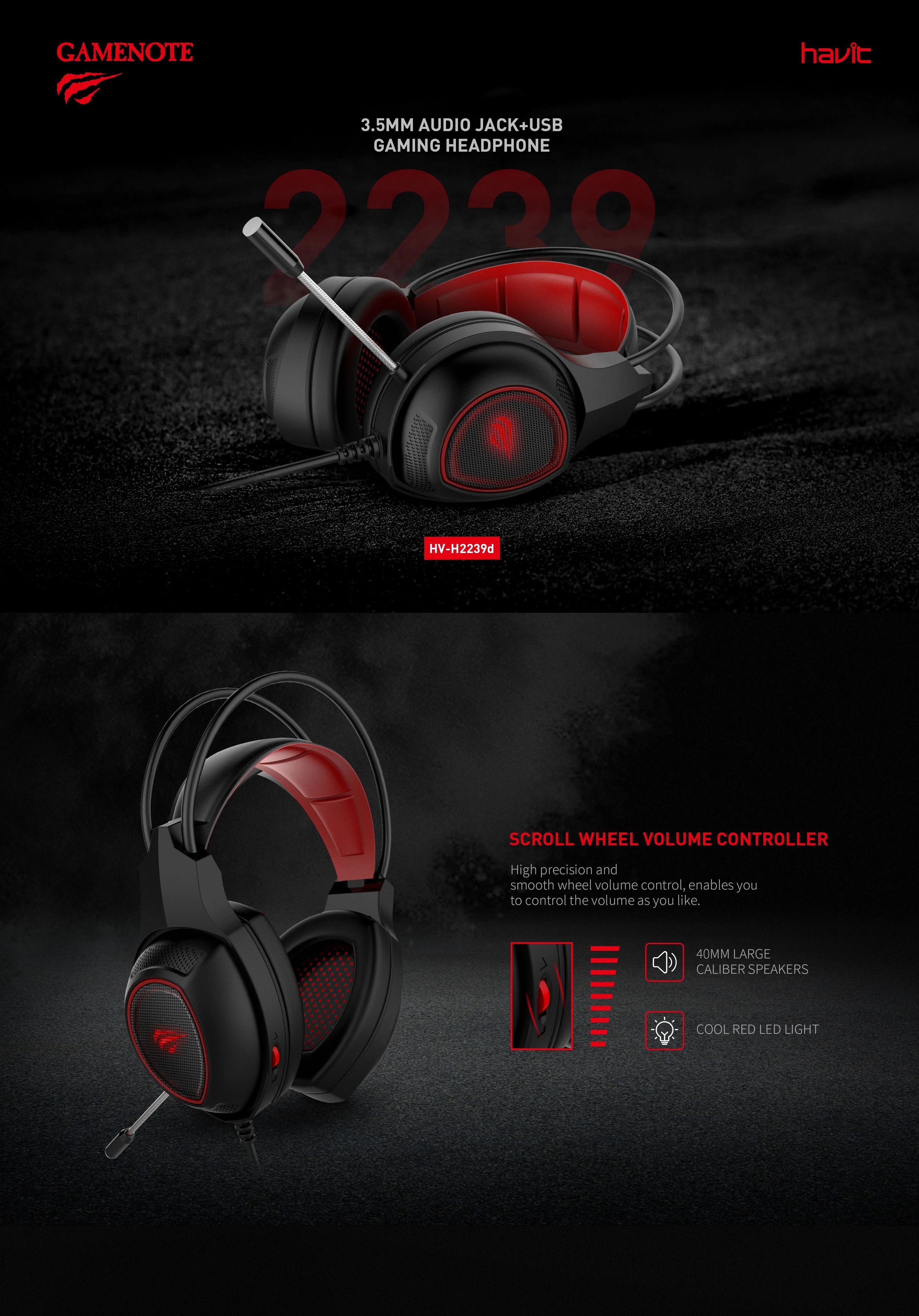 HAVIT HV-H2239D 3.5mm audio jack+USB gaming headphone