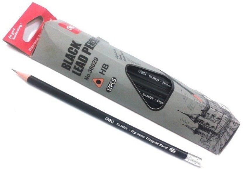 Deli Rubber Tipped Triangular Black Lead HB Pencil 12 Pcs