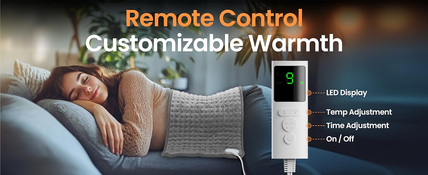 - আপনার পছন্দসই তাপ সেটিংস: ৯টি ভিন্ন তাপমাত্রার স্তর থেকে আপনার প্রয়োজন অনুযায়ী সেটিংস বেছে নিন। ৯৫°F থেকে ১৪৯°F পর্যন্ত তাপমাত্রার এই প্যাডটি মৃদু তাপ থেকে শুরু করে গভীর থেরাপি—যেকোনো আরাম আপনার হাতের মুঠোয় নিয়ে আসে।