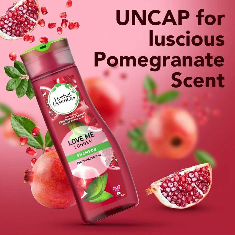 - Shampoo with a scent-sational blend of pomegranate essence and red berry scent.