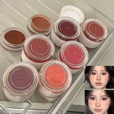 HERORANGE 7-color Blush Suitable for Lips & Cheeks, Matte Water-proof Texture with Double-open Design in One Box
