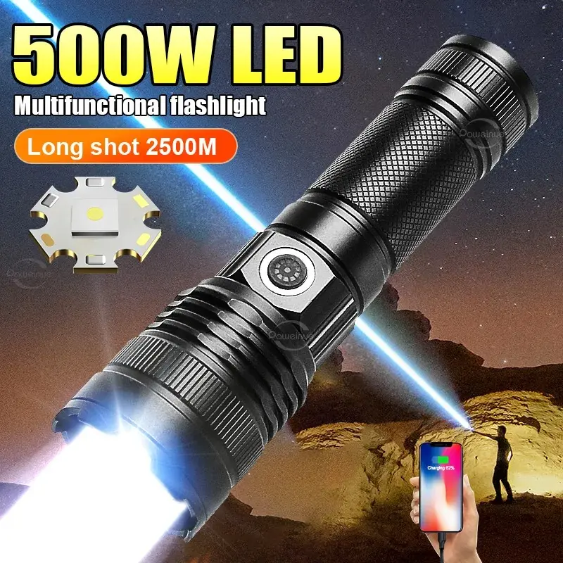 High Power Metal Body Rechargeable Led Flashlights LED Camping Torch Light - Black
