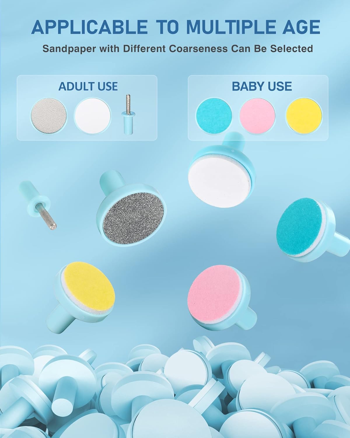 - Baby nail trimmer comes with 6 cushioned sandpapers in precise grit Levels, and 4 working modes and rotation to enhance nail filing positions and softer, smoother nails. pcs batteries operated, handy to replace in daily life.