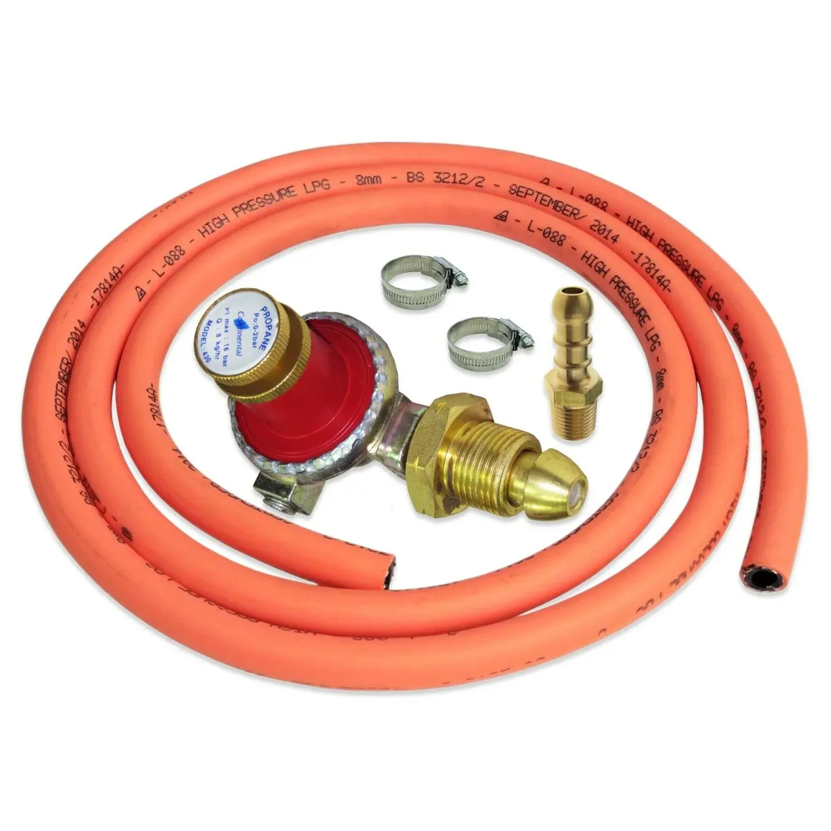 Regulator | Low-pressure type appropriate for cooking gas (e.g. ~30 mbar output), made of brass or zinc alloy, with standard inlet/outlet threads. | Ensures correct gas pressure for stove, avoids overpressure. |