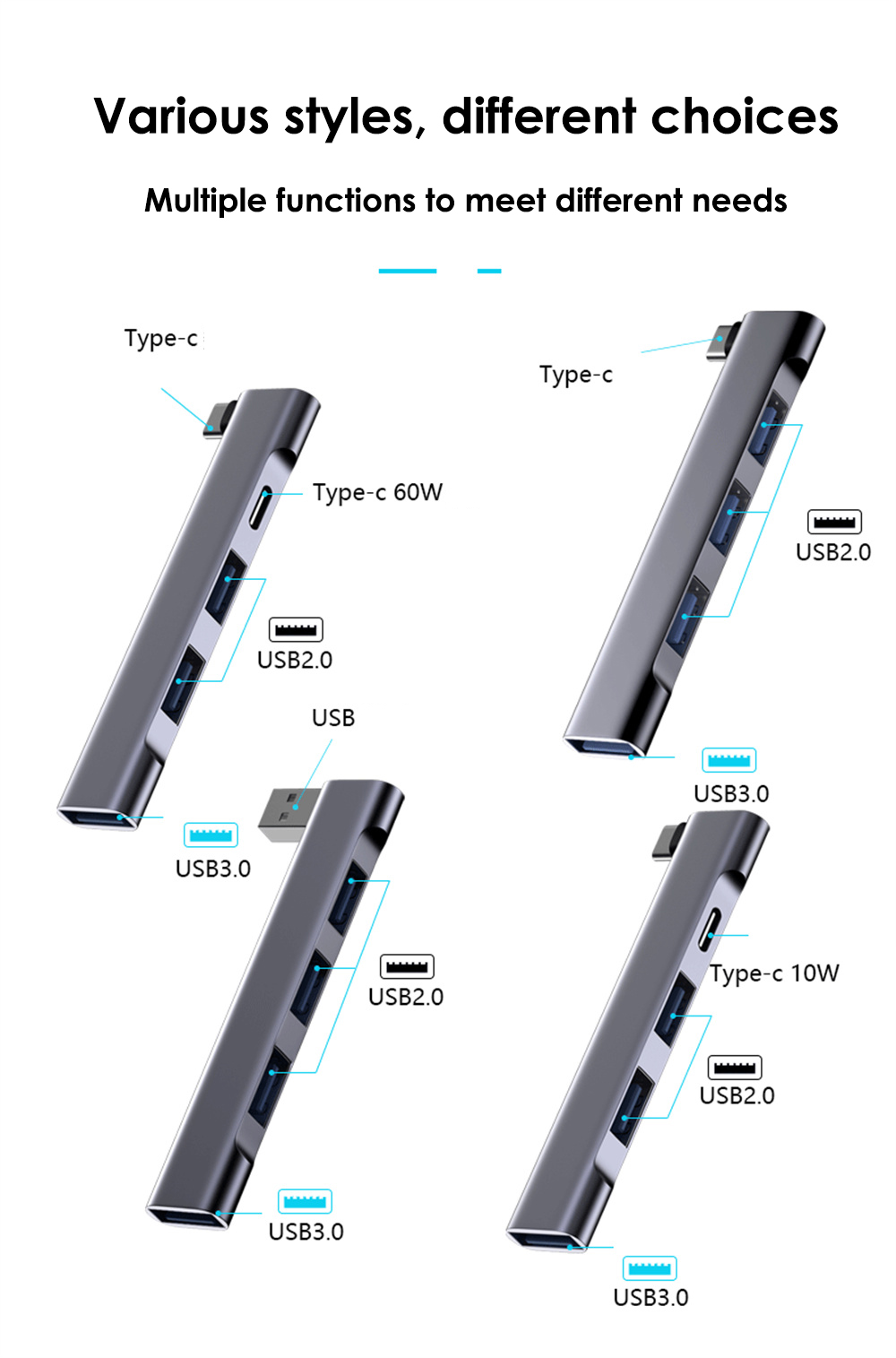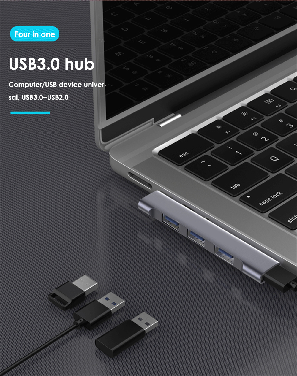 - 1.【4 in 1】 This kind of USB hub is enough to meet your daily needs because there are 3 adapters, convenient for you to connect your other devices to your computer.
