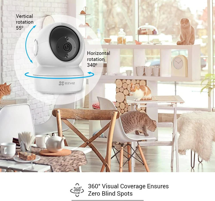 - Great vision is the key to reliable protection: Whole-room coverage is a breeze. The H6c helps you keep eyes-open-wide on your indoor space, so even when your cat starts playing hide-and-seek, you can rotate the camera to find where it is. It also renders evenly exposed, clear black-and-white night vision, thanks to its built-in infrared LEDs, so you can enjoy peace of mind while you sleep.