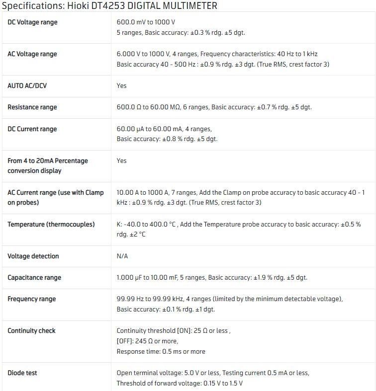 Key Features: Hioki DT4253 DIGITAL MULTIMETER