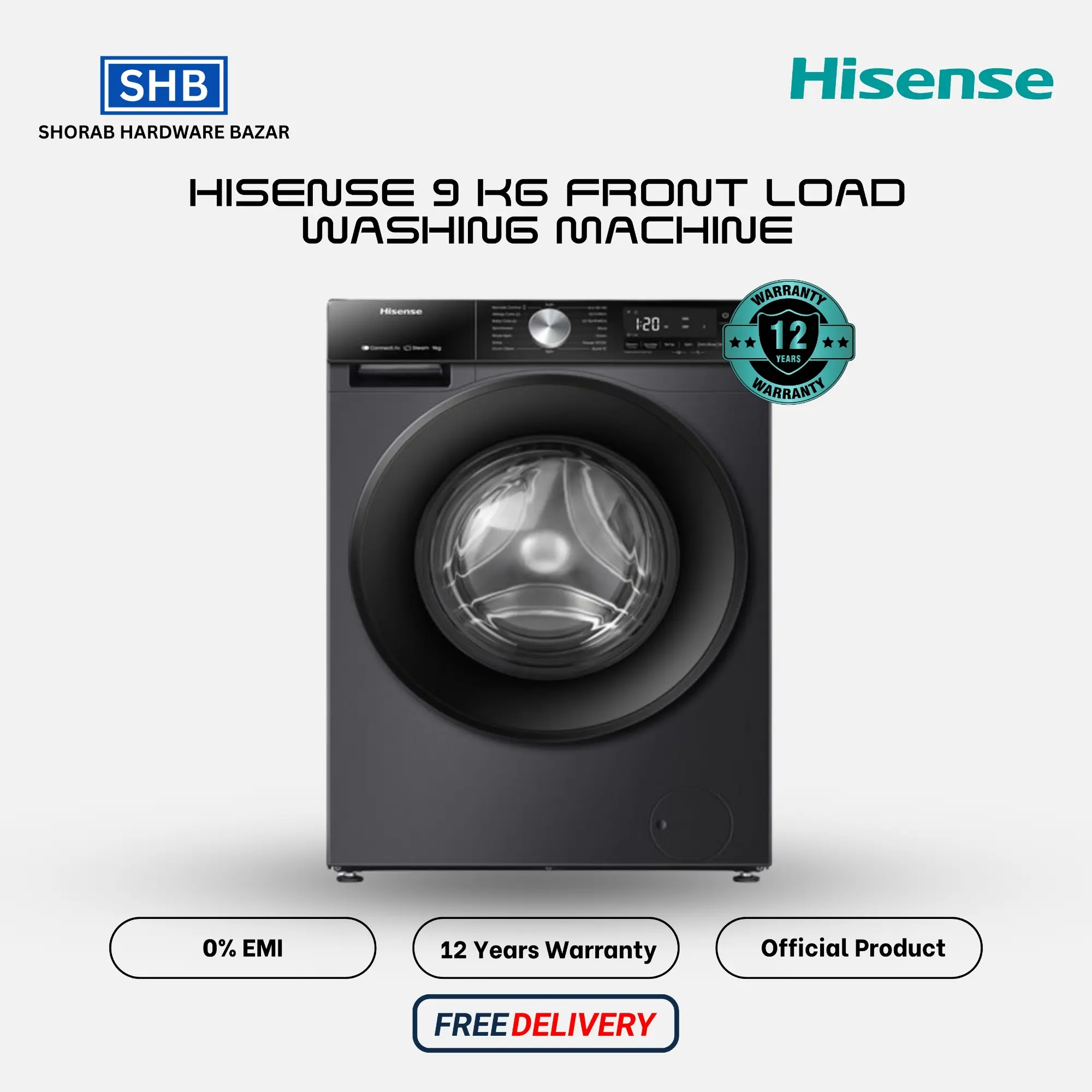 Hisense Official 9 kg Front Load Washing Machine with Free Delivery (Black)
