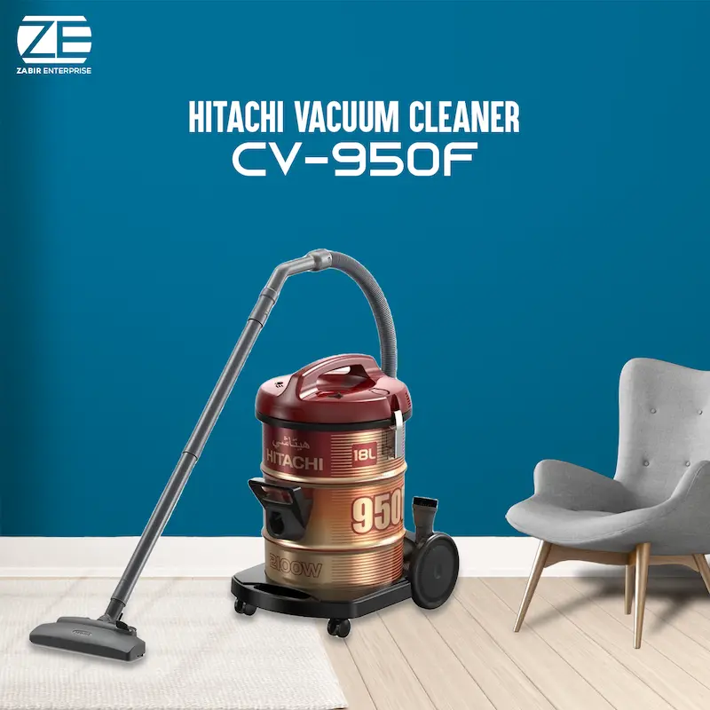 Hitachi Vacuum Cleaner CV-950F with its high cleaning Ability and low noise level can be a perfect addition to your household or office or factory. Enjoy a hassle free cleaning experience with a 2100 watts motor power, 18 liters dust capacity. Also features service Nozzle With Air Dust Catcher, Rug-Floor Nozzle, Dusting Brush. With ECO power and stylish compact design.Hitachi Vacuum Cleaner CV-950F can be the solution to your cleaning worries.