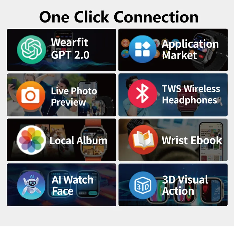 Music control, Bluetooth music playback, photo control, anti loss, alarm clock,Weather, APP dial push, AI voice assistant"