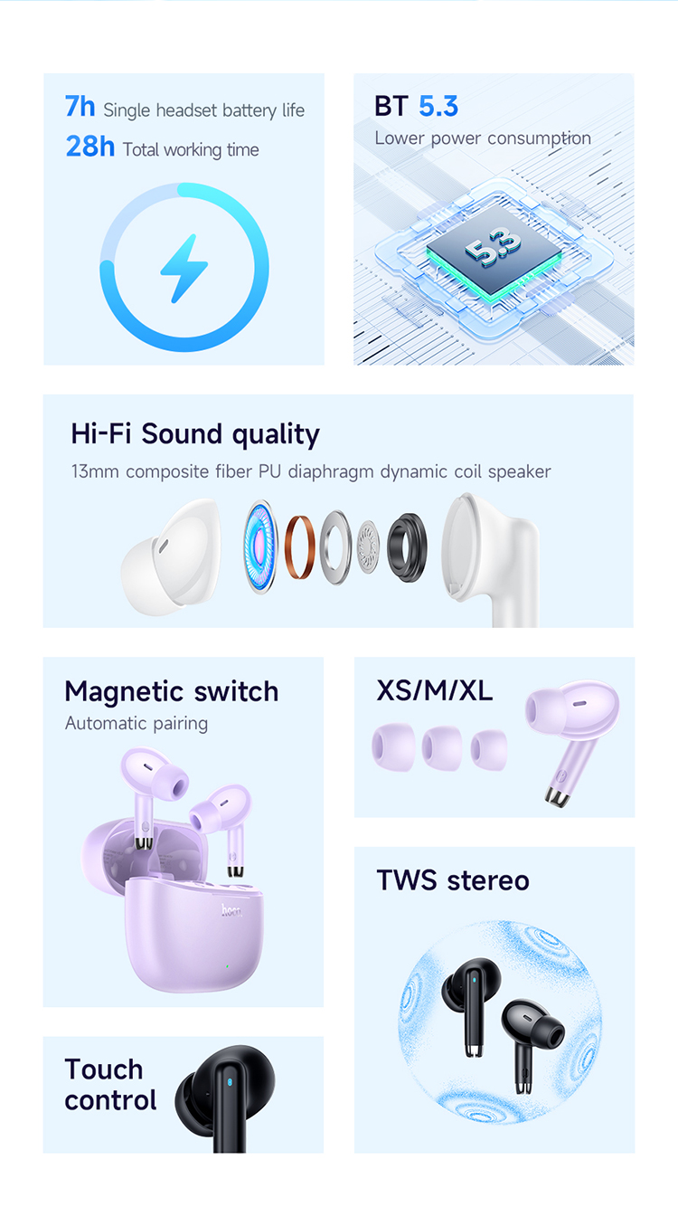 Bluetooth 5.3 for Seamless Connectivity Equipped with advanced Bluetooth 5.3 technology, the Hoco EQ2 ensures a fast and stable connection to your devices. Enjoy lag-free audio with minimal interruptions, whether you're gaming, streaming, or on calls. This modern connectivity makes these earbuds perfect for everyday use, providing a smooth listening experience wherever you go.