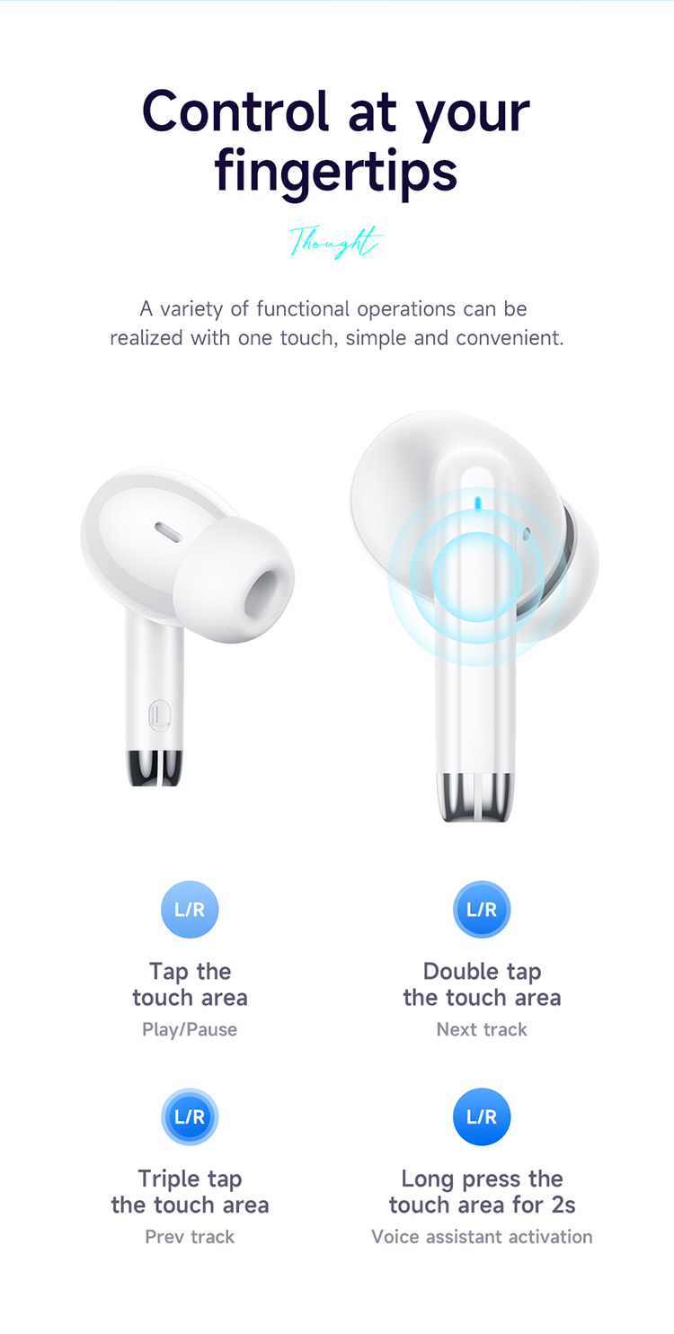 Touch Control for Effortless Management Enjoy convenient touch controls that let you manage your music and calls with a simple tap. Adjust volume, skip tracks, or answer calls without reaching for your device, providing a hassle-free experience as you go about your day.