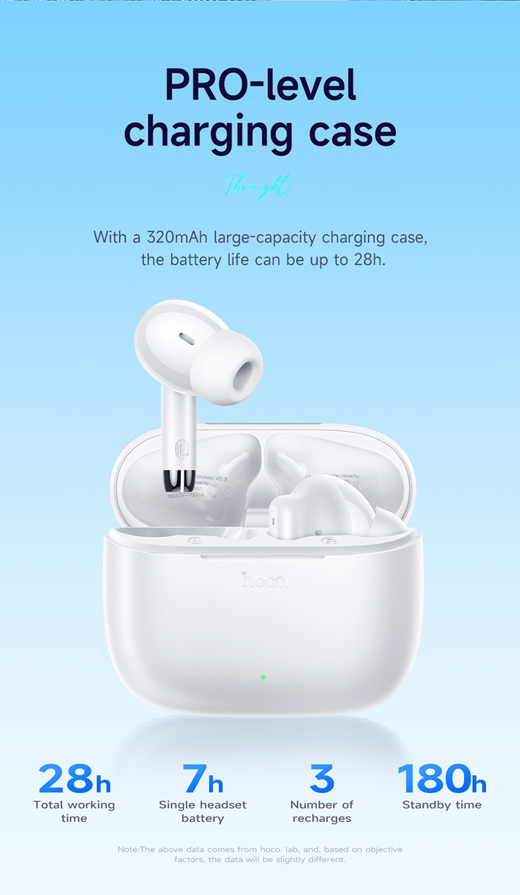 Long Battery Life for All-Day Listening The Hoco EQ2 earbuds provide impressive battery life, allowing you to enjoy extended listening sessions without constantly worrying about recharging. With the included charging case, you can keep your earbuds powered up and ready to go, making them a reliable companion for your busy lifestyle.