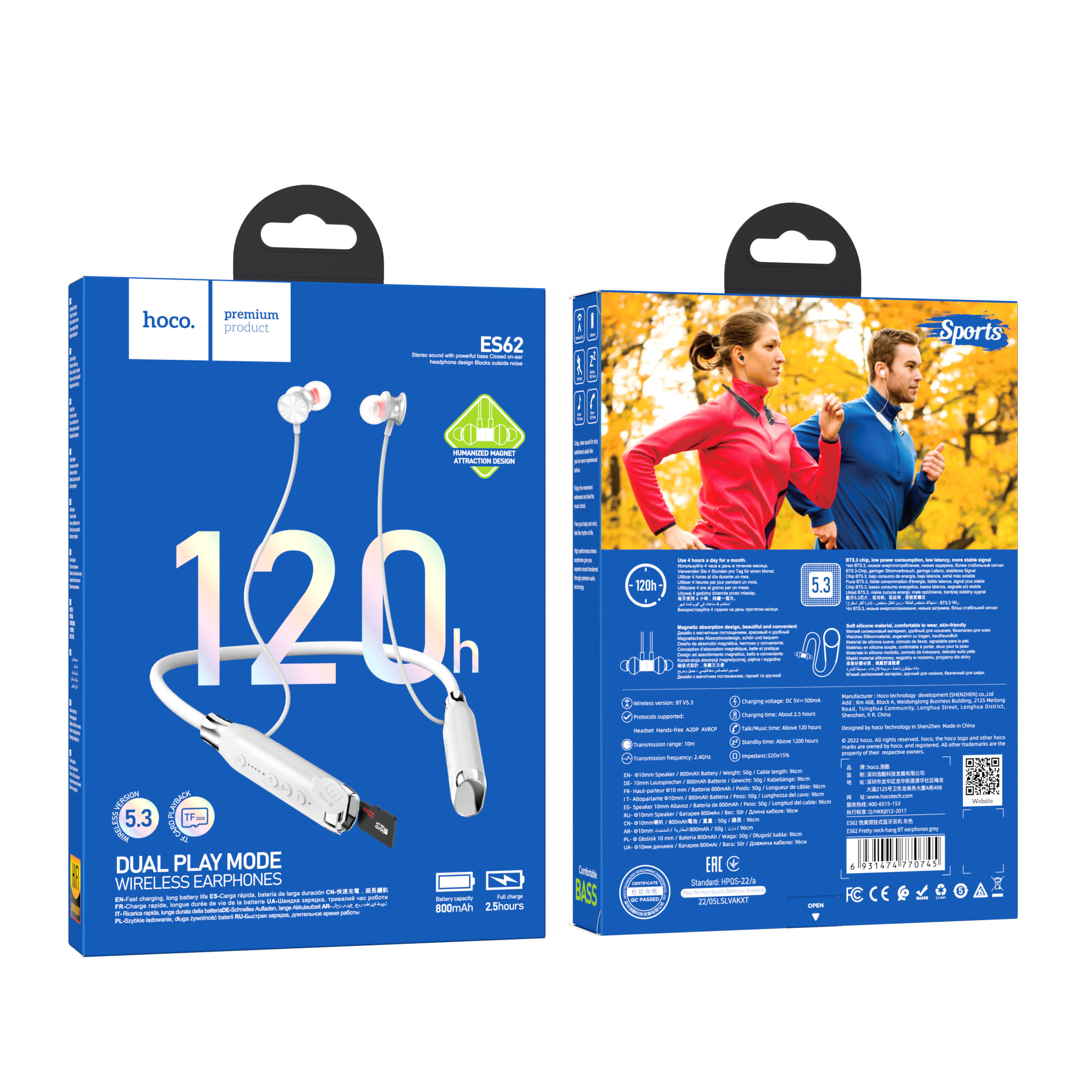 Enjoy the flexibility of Bluetooth and TF card playback with the Hoco ES62 Pretty neck-hang BT earphones. Stream your favourite music wirelessly from your smartphone or tablet, or insert a TF card (up to 32GB) for convenient onboard storage. With multiple playback options, you’ll always have access to your favourite tunes.