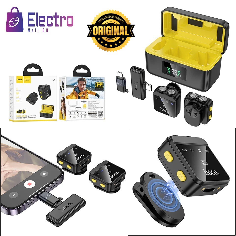 - 🎙️ HOCO L17 Wireless Dual Magnetic Microphone – Record Like a Pro Anytime, Anywhere! 🔥