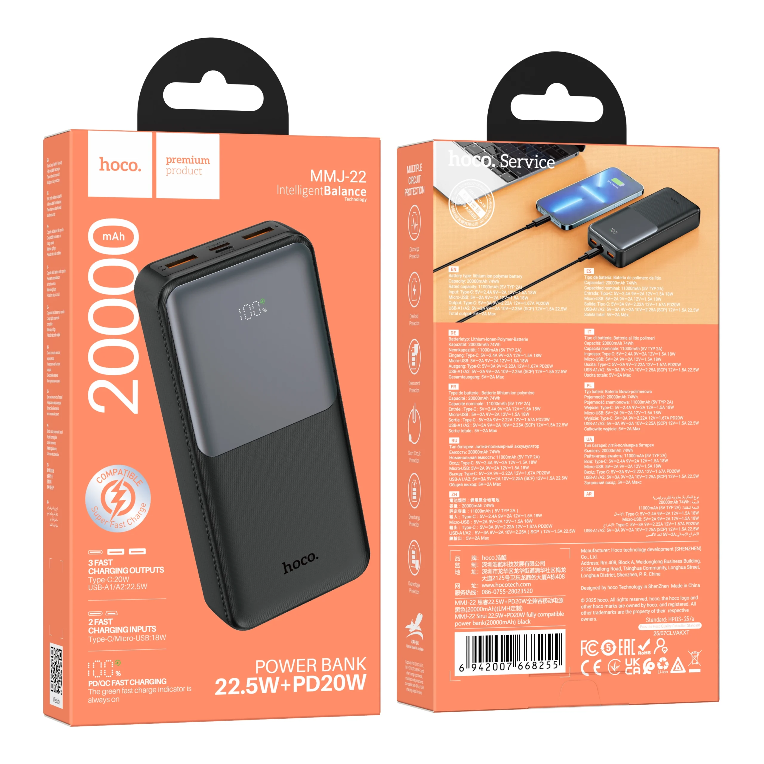 Hoco MMJ22 Sirui 22.5W+PD20W Fast Charging 20000mAh Power Bank - Black