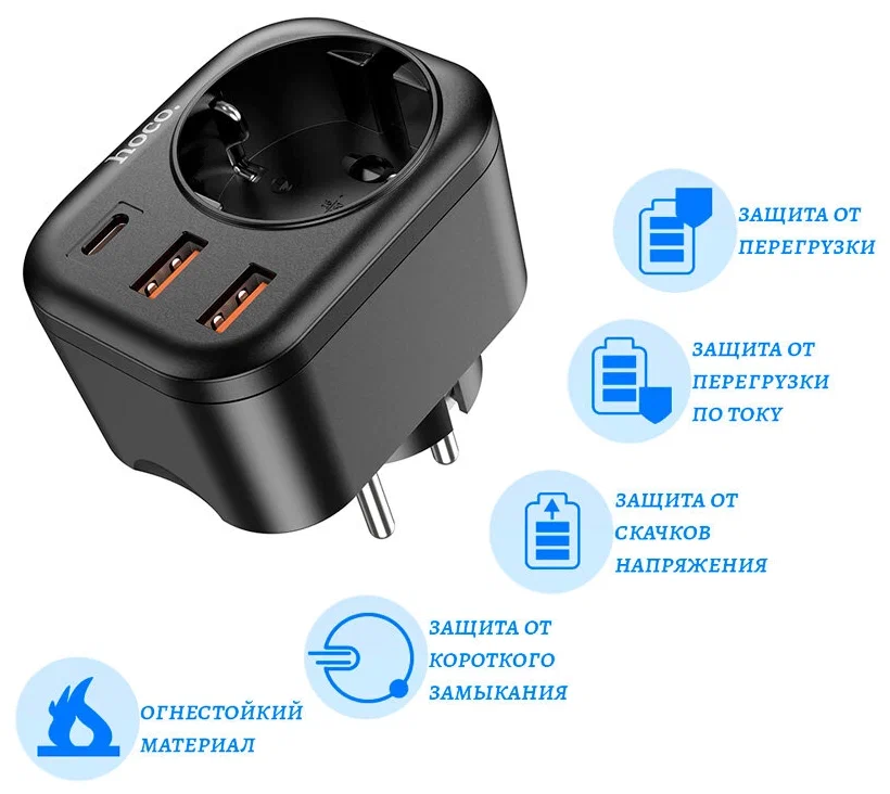 hoco NS3 Multifunctional Socket Including 1C+2A PD20W Ports, EU Plug(Black)