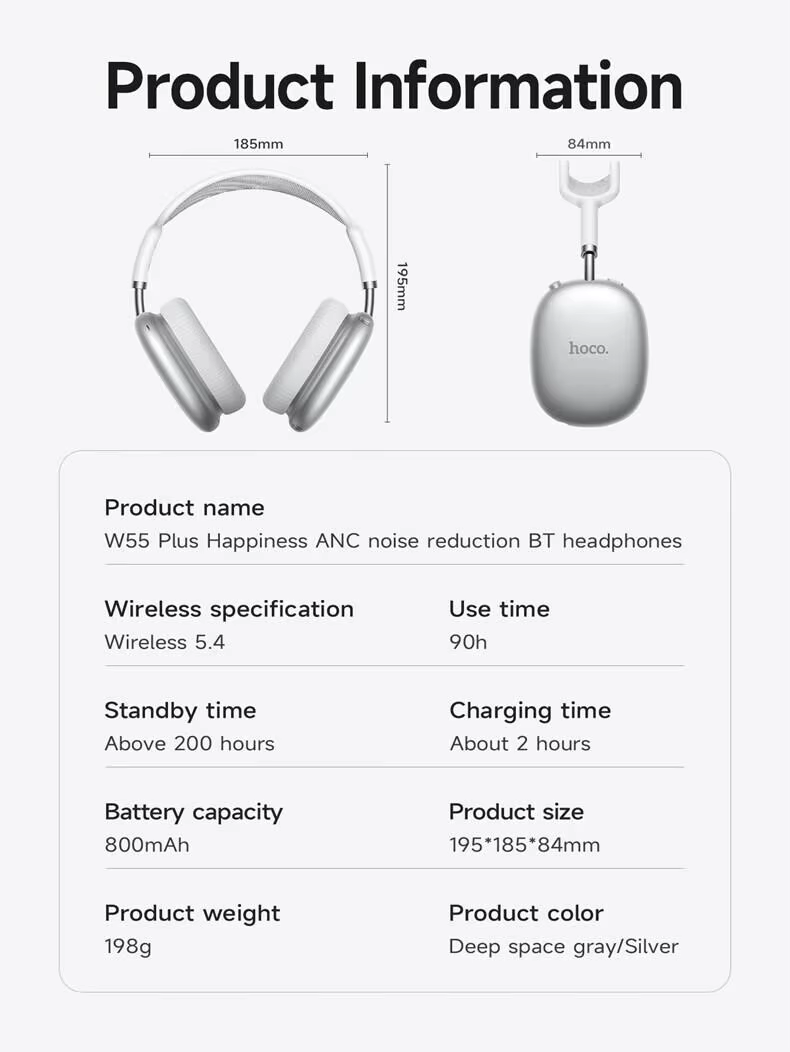 Hoco W55 Plus Wireless Active Noise Cancellation IPX5 Waterproof Private Mold for Male Female Sports Headwear Type-C