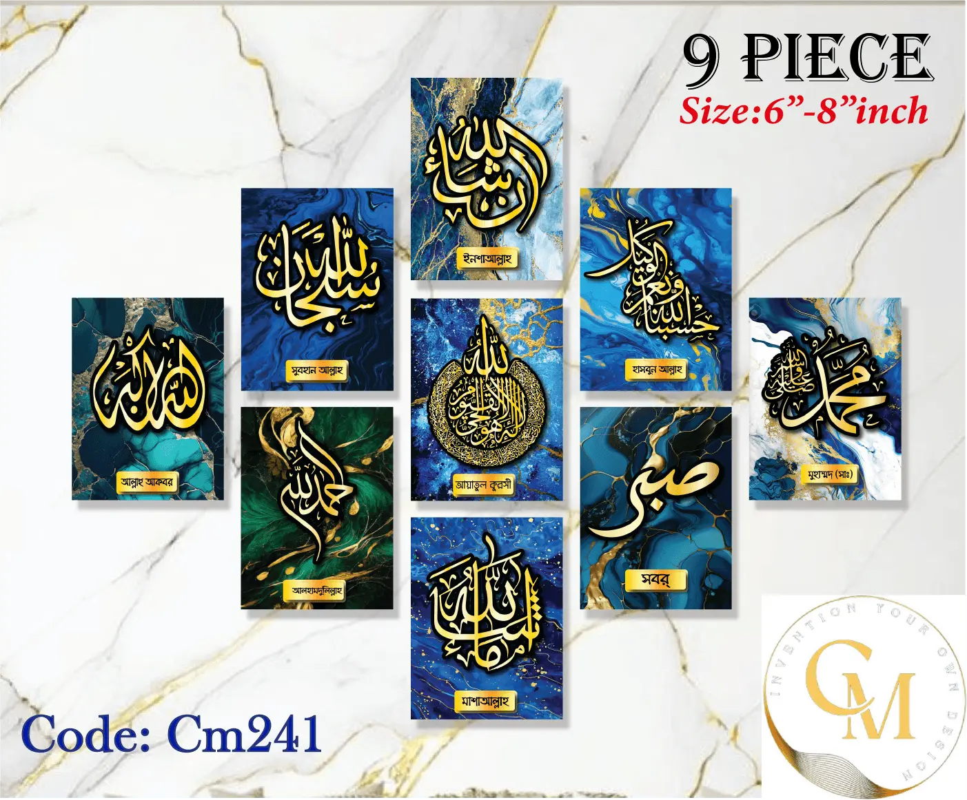 Home Decor 9pcs Arabic Calligraphy Wallboard Decoration