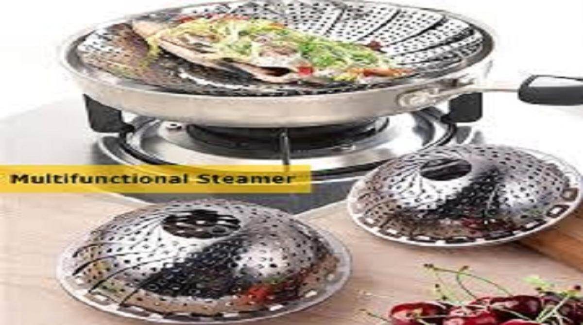 Product details of Hozada Stainless Steel Steamers Foldable Pasta Pot 3 in 1 Steaming Plate Food Fruit Trays Vegetable Rack Drains Dish Cooking Tool Multifunctional Lotus Steamers 27.3cm Adjustable Width