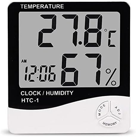 HTC-1 Digital Thermometer Hygrometer Clock Alarm/Alarm Calendar 5 Functions Large Screen Desktop Stand & Wall Mount White Thermometer Hygrometer Digital - Multicolor