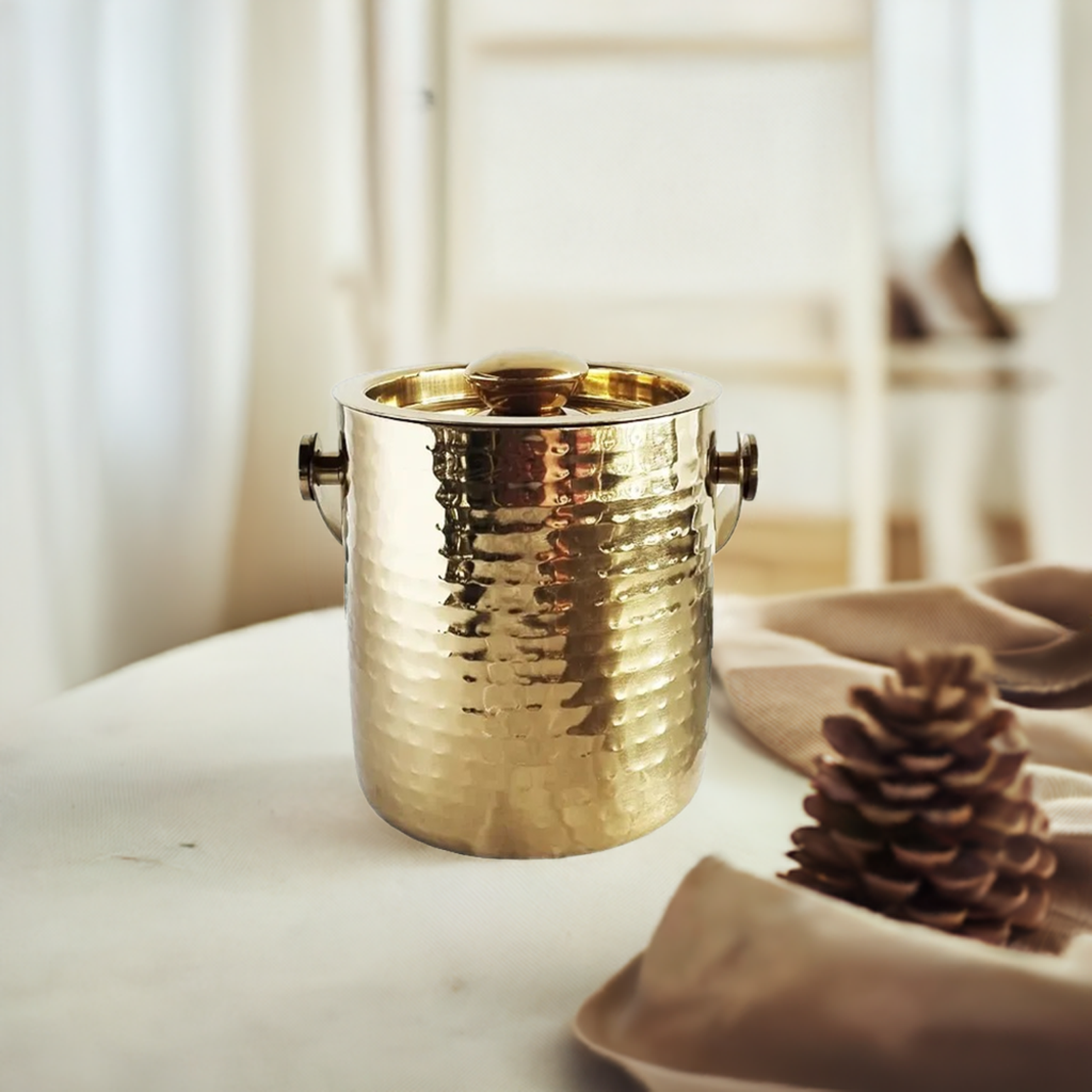 Elevate your entertaining experience with the Venus Stainless Steel Ice Bucket with Lid. Crafted in India using high-quality SS202 stainless steel, this 2.0-litre round ice bucket combines functionality with a sleek, modern aesthetic. Its luxurious gold polished finish adds a touch of elegance, making it the perfect accessory for any bar or dining table.
