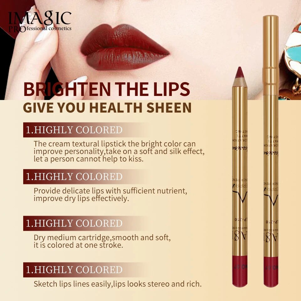 ব্র্যান্ড: IMAGIC এই পেন্সিল মসৃণ এবং ক্রিমি প্রয়োগের সাথে রঙ প্রদান করে। রক্তপাত হয় না। দীর্ঘস্থায়ী পরিধান. নেট ওজন: 1/g প্যাকেজ অন্তর্ভুক্ত: 8pcs x লিপ লাইনার পেন্সিল (পেন্সিল শার্পনার) স্পেসিফিকেশন: দীর্ঘ পরিধান এবং জলরোধী, উজ্জ্বল রং আপনার আকর্ষণীয় করে তোলে নিখুঁত নির্ভুলতার সাথে ঠোঁটকে সংজ্ঞায়িত করুন আপনার ঠোঁট বরাবর মসৃণভাবে চালান নতুন এবং উচ্চ মানের পেন্সিলগুলি আপনার ঠোঁটকে শুকিয়ে দেয় না এবং টানা বা টানা ছাড়াই মসৃণভাবে প্রয়োগ করে। কিভাবে ব্যবহার করে: 1.প্রথমে উপরের ঠোঁটের শিখর এবং নীচের ঠোঁটের নীচের লাইনটি নির্ধারণ করুন, লিপ লাইনার পেন্সিল দিয়ে স্বল্পমেয়াদী আঁকুন; 2. নির্ধারিত স্বল্পমেয়াদী সংযোগ করুন, যথাক্রমে বাইরে থেকে আঁকা ঠোঁট কনট্যুর মধ্যে; 3. পেইন্টেড লিপ লাইনারের মধ্যে, সরাসরি লিপ লাইনার পেন বা একই রঙের লিপস্টিক ব্যবহার করতে পারেন ভিতর থেকে সমানভাবে ডব করতে;