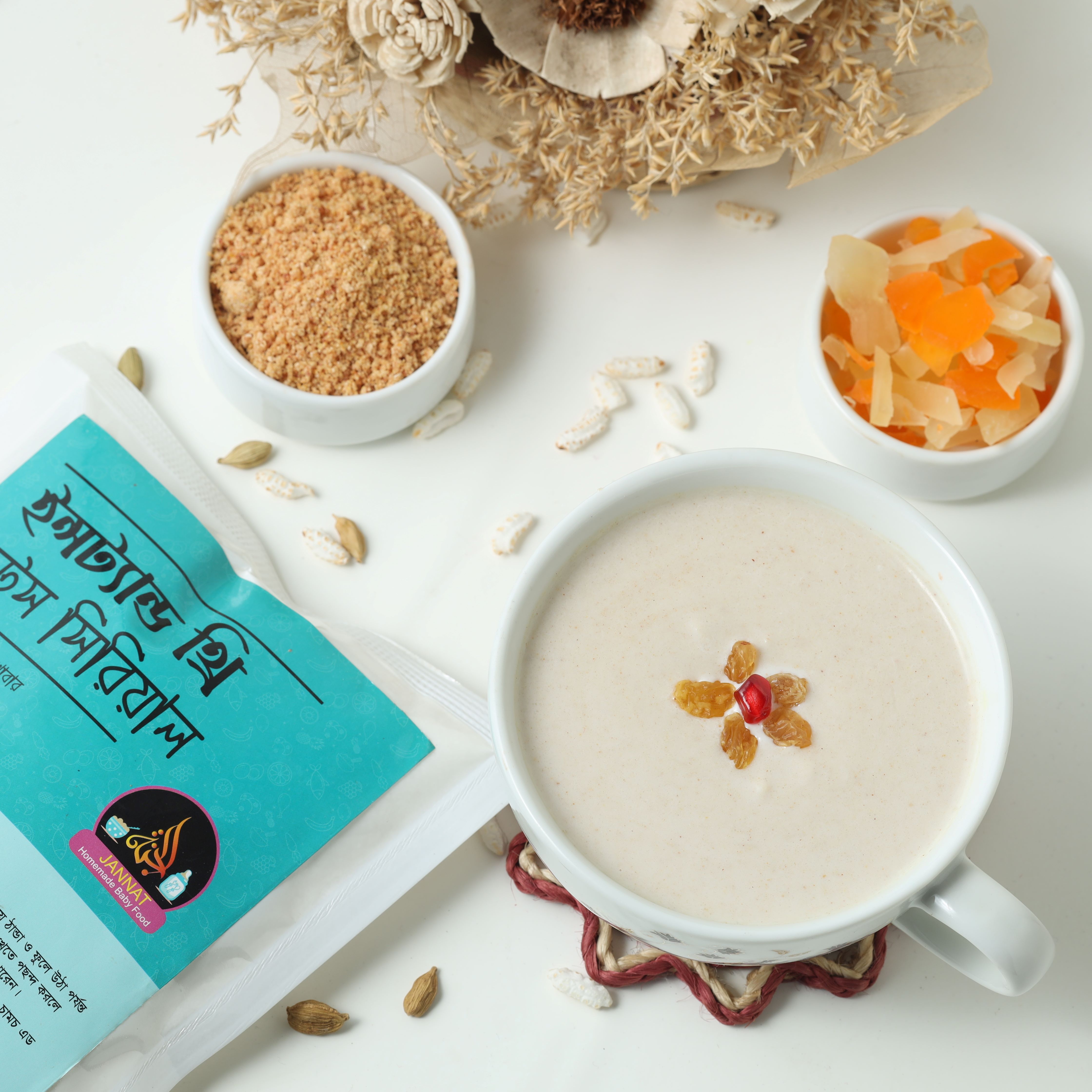 এটা তৈরি করতে সময় লাগবে মাত্র ১ মিনিট রান্নার কোন প্রকার ঝামেলা ছাড়া ইনশাআল্লাহ। ব্যাস্ত ও কর্মজীবী মায়েদের জন্য হবে উপকারী। যাদের বেবিদের নিয়ে লং জার্নি বা ট্রাভেল করার সময় খাবার নিয়ে দুশ্চিন্তায় থাকেন তাদের জন্য এটা উপযুক্ত ও আদর্শ খাবার। সবার কাঙ্খিত আর মোস্ট রিকোয়েস্টিং প্রোডাক্ট যা তৈরি করে আপনাদের পর্যন্ত পৌঁছাতে পেরে আমি মহান আল্লাহ পাকের দরবারে লাখো কোটি শুকরিয়া আলহামদুলিল্লাহ। এটা ১০০০% ইনস্ট্যান্ট। কিন্তু স্বাদে,গুনে, মানে অতুলনীয়। আর একটা ইনস্ট্যান্ট ফুডের গুণগত পুষ্টিমান ঠিক রাখাটাই চ্যালেঞ্জিং। যাদের গ্লুটেন ফুডে সমস্যা আছে তারা ও এটা খেতে পারবে ইনশাআল্লাহ কারণ এটা গ্লুটেন ফ্রি। যে বেবিদের কোষ্ঠকাঠিন্যের সমস্যা আছে তাদের জন্য হতে পারে একটা আদর্শ খাবার।