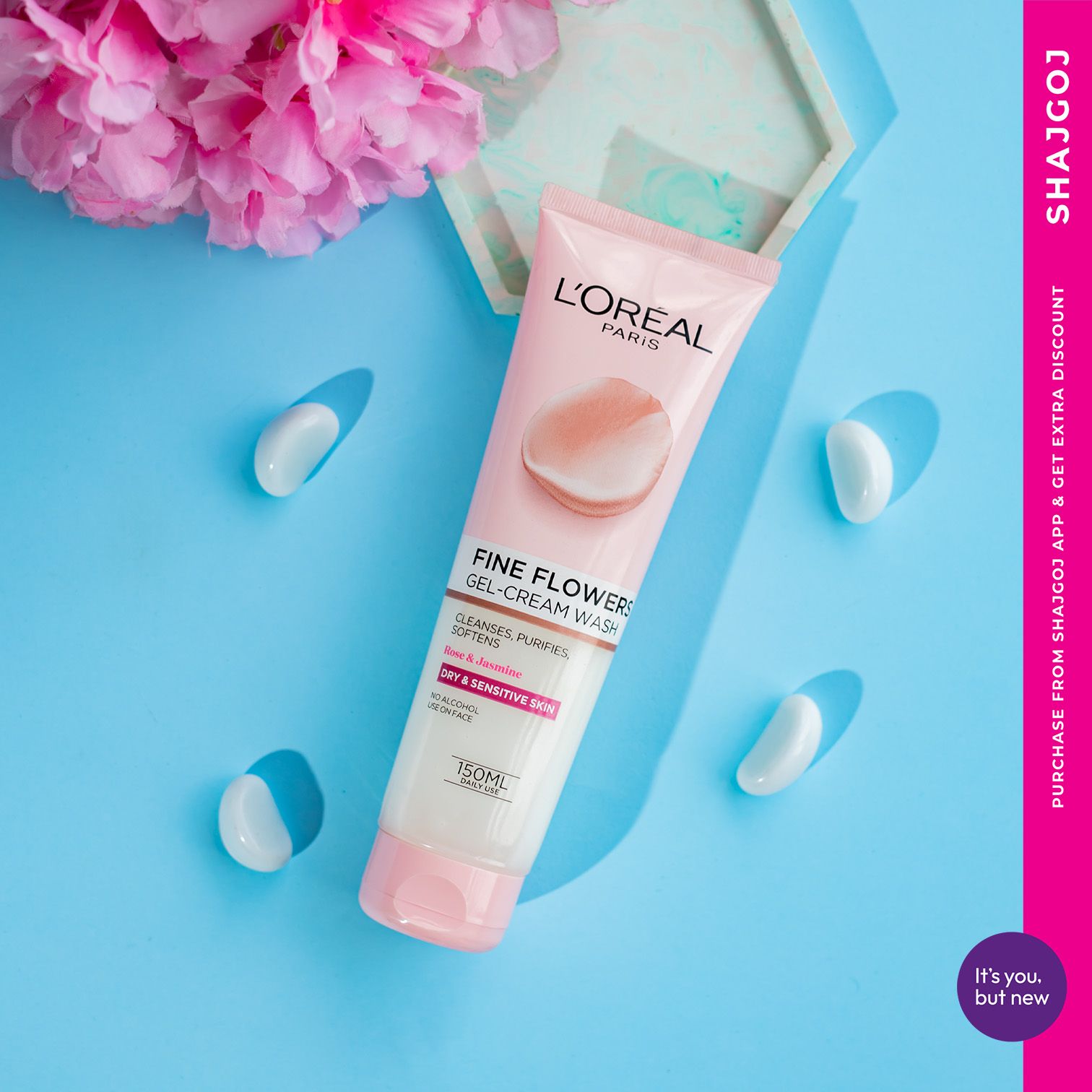 - The L'Oréal Paris Laboratories have selected and combined extracts of Rose and Jasmine Flowers, in a cleansing gel-cream wash for soft, comfortable and fresh skin, every day. The rich gel-cream texture emulsifies in water, transforming into a creamy foam that cleanses and softens the skin without drying it out. Rose known for its soothing and comforting properties. Jasmine renowned for its protecting and moisturising properties. Skin is cleansed and free from impurities. Reveals deeply comfortable skin that feels smooth and silky soft. No soap. No alcohol. Tested under dermatological and ophthalmological control.