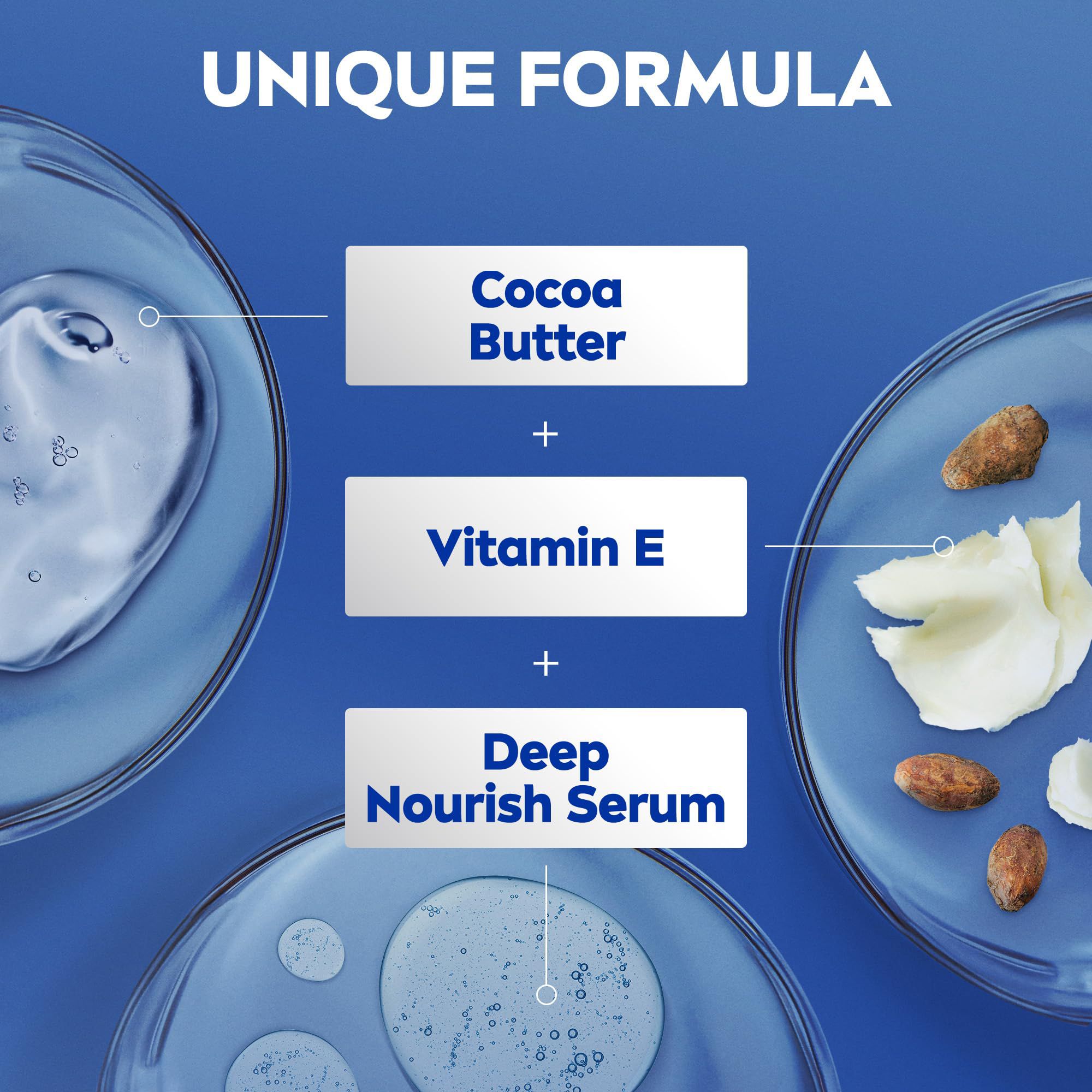 n is a creamy textured formula that instantly gives your skin sensational softness while enveloping your senses with an indulgent fragrance. Formulated with deep moisture serum, NIVEA Cocoa Butter Body Lotion is enriched nourishing cocoa butter & vitamin E that helps to lock in deep moisture for 48hours and give you noticeably smoother skin. NIVEA Cocoa Butter Body Lotion keeps away dullness to reveal glowing and beautiful skin all day long. At NIVEA we’ve got a vast selection of soaps, shower gels, bath additives, deodorants, creams, lotions, milks and a lot more. If you’re looking for products to help improve the healthy look or glow of your skin, we’ve got you covered! Take a look now and discover the ideal NIVEA product for your needs and preferences. We have products for both men and women including shaving items and deodorants for all of your personal hygiene requirements. NIVEA, a hundred years of skincare for life!