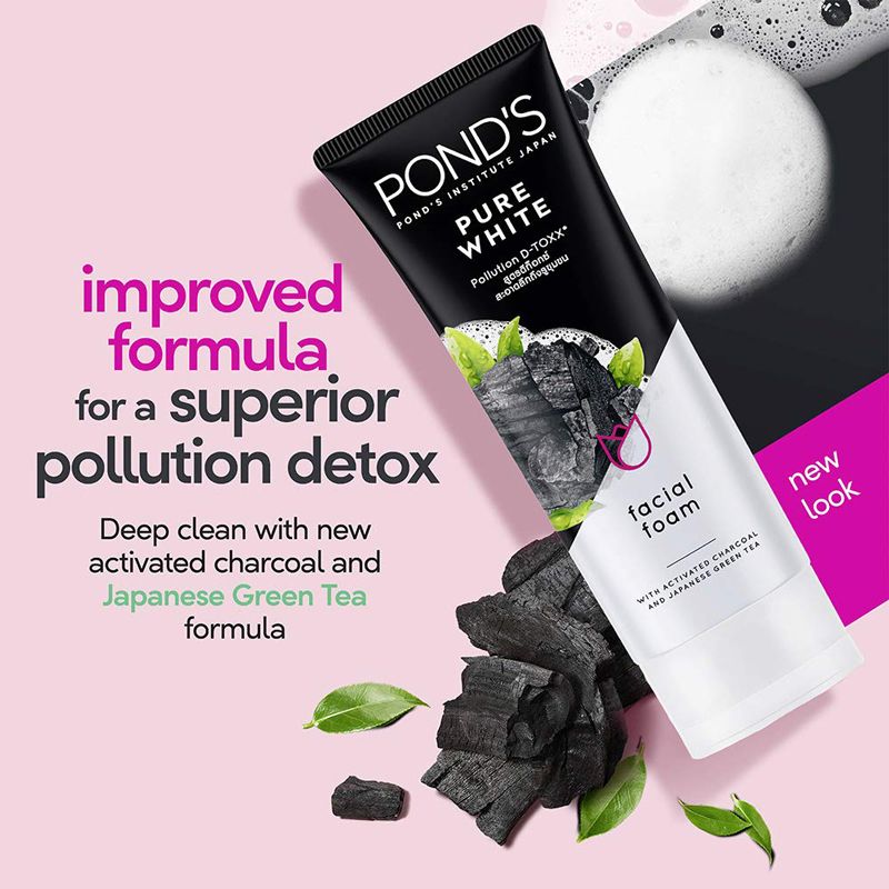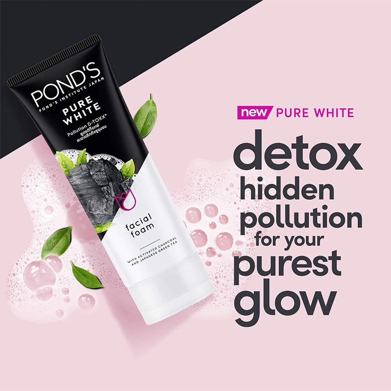 introduces a new skin cleansing philosophy, black attracts black. New Pond's Pure White Facial Foam is formulated with activated carbon. The black activated carbon is known to easily absorb and lift away black dirt and impurities from the skin surface and deep within pores.