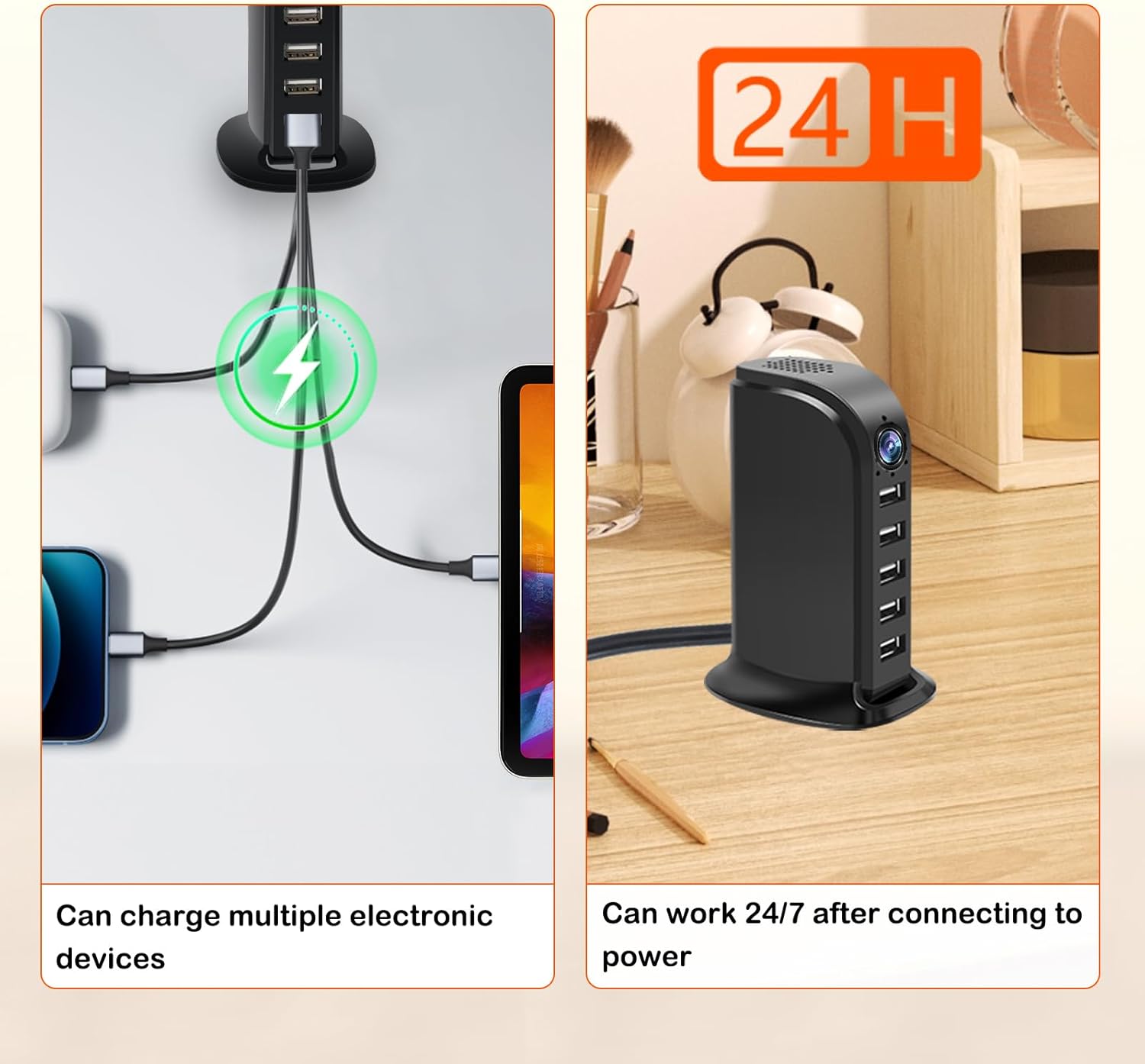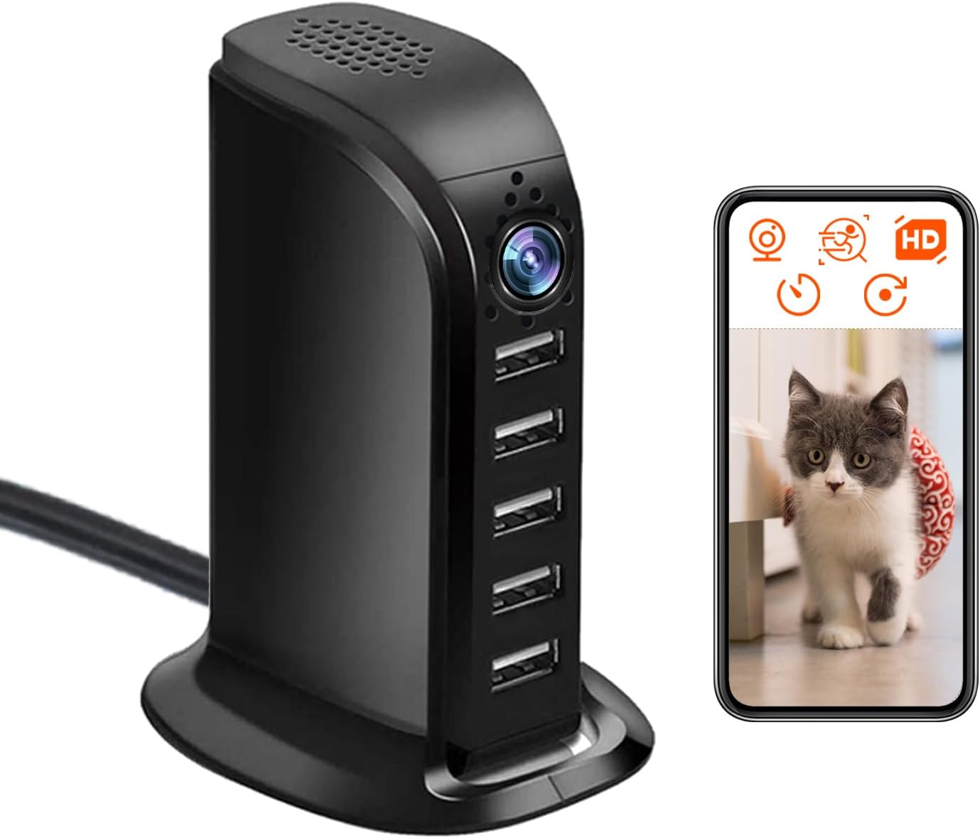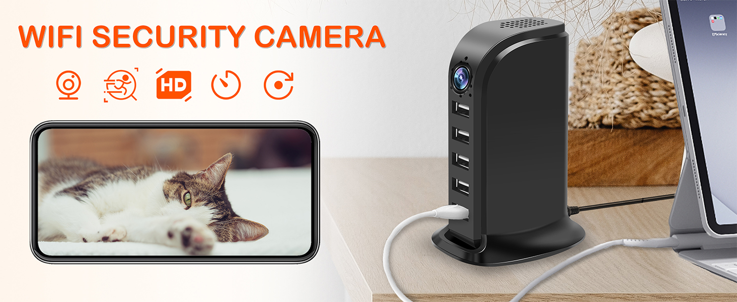 IP Wifi Camera Charger 5 Ports USB Ultra HD 4K HD Multi Port USB Hub - Black