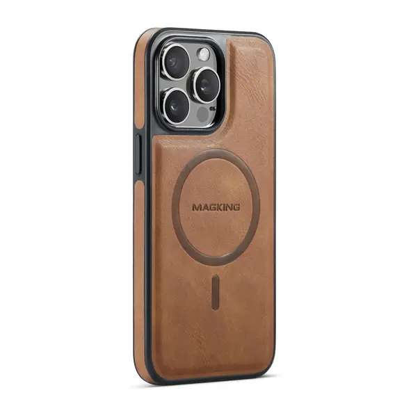 Magking K1 Series For Iphone 16 Pro Max Magnetic Case PC+TPU+PU Leather Shockproof Phone Cover - Brown