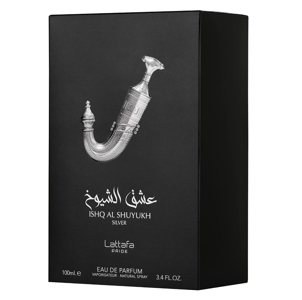 Ishq Al Shuyukh Silver by Lattafa Perfumes is a Woody Fruity fragrance for men and women. Top Notes: Lemon, Bergamot. Heart Notes: Black pepper, Pineapple. Base Notes: Amberwood, Cedarwood, Patchouli, Vanilla. Suitable for daily wear.