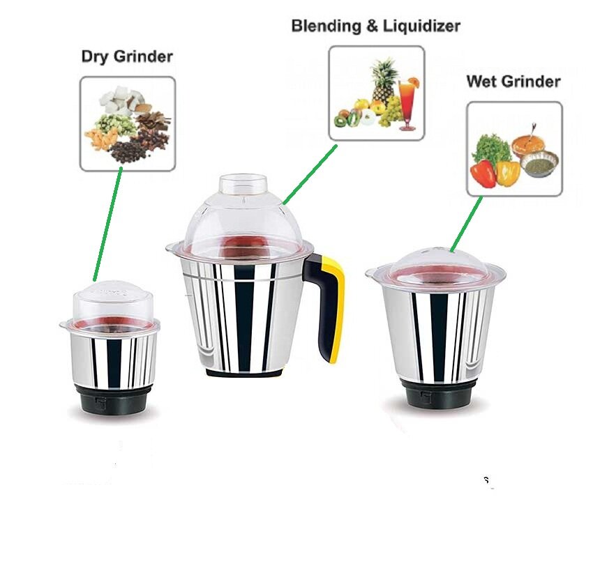 The power-packed motor and it's uniquely crafted blades make grinding traditional masala, and more simple. The jaipan mixer grinder's aesthetic design and the vibrant colours add a touch of style to your kitchen, while making cooking convenient. There's one for everyone. High speed, energy efficient motor, more power, lower consumption of electricity, smooth running, high performance, long life mixer, precision engineered cutter-spindle assembly preloaded with oiled felt, polycarbonate lid, unbreakable & food grade, an iso 9001 :: 2008 certified company, the jars are made of stainless steel making them highly durable. It lets you do dry grinding as well as wet grinding in minutes. (Contents : 1) basic unit 2) three stainless steel jar 3)rubber ring 4)polycarbonate dome & lid 5)dry grinding blade 6) whipper blade 7)spatula 8) mincing blade 9) vegetable grinding blade 10) instruction manual with guarantee card).
