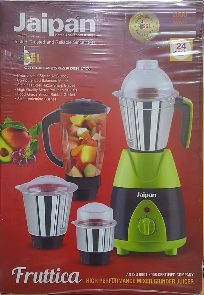 - Self Lubricating Bushes, 3Stainless Steel Jars, 1 Juicer Jar, 3 speed With inchar,