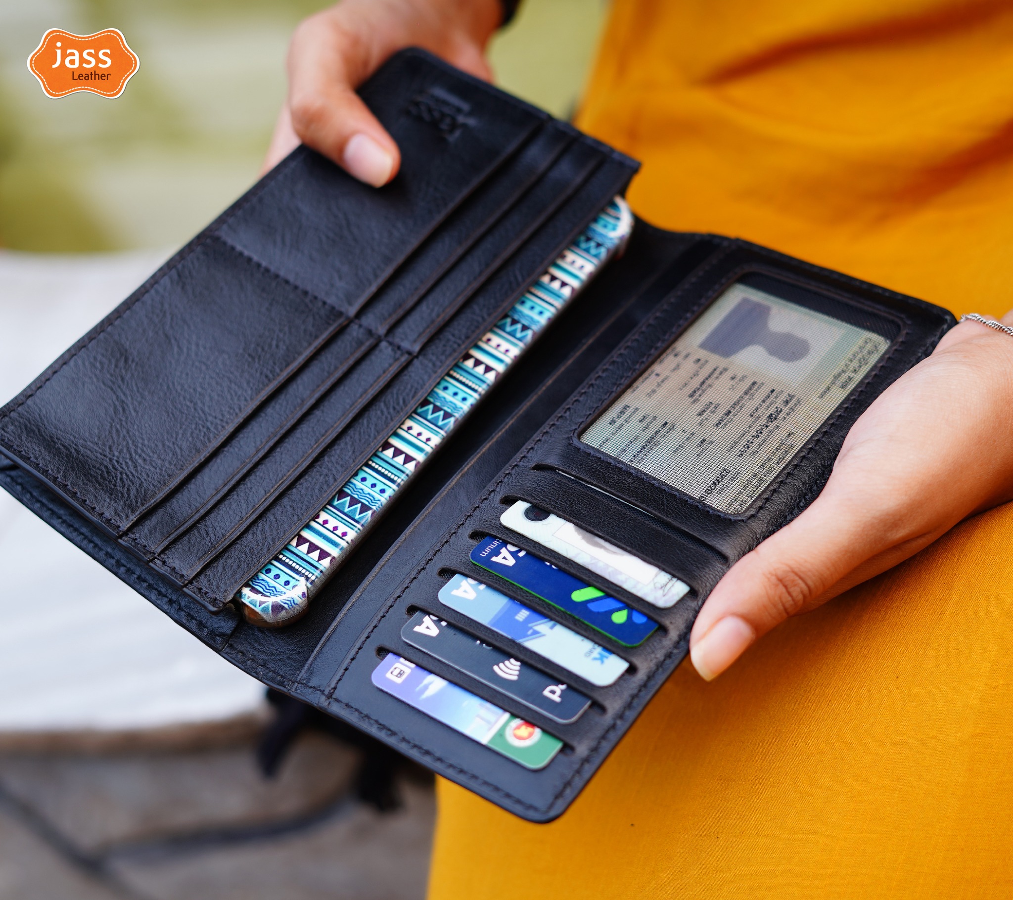 - Slots: 6 card slot+ 1 photo windows+ 1 mobile compartment+ 2 money compartment+ 1 coin compartment