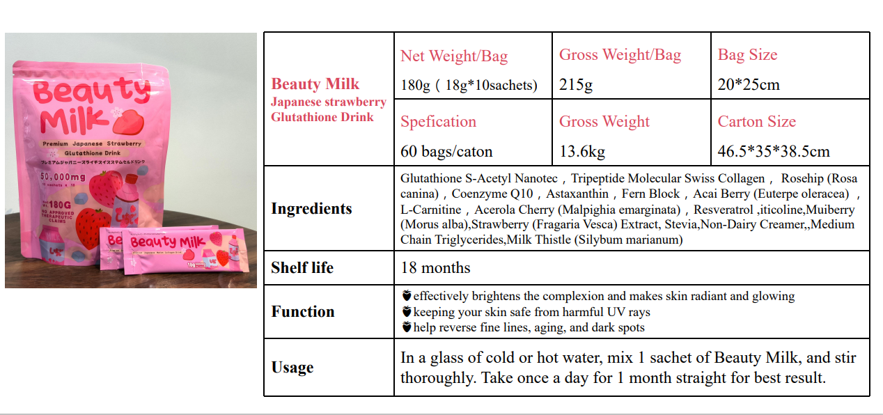 Product details of Beauty Milk Strawberry Collagen Glutathione