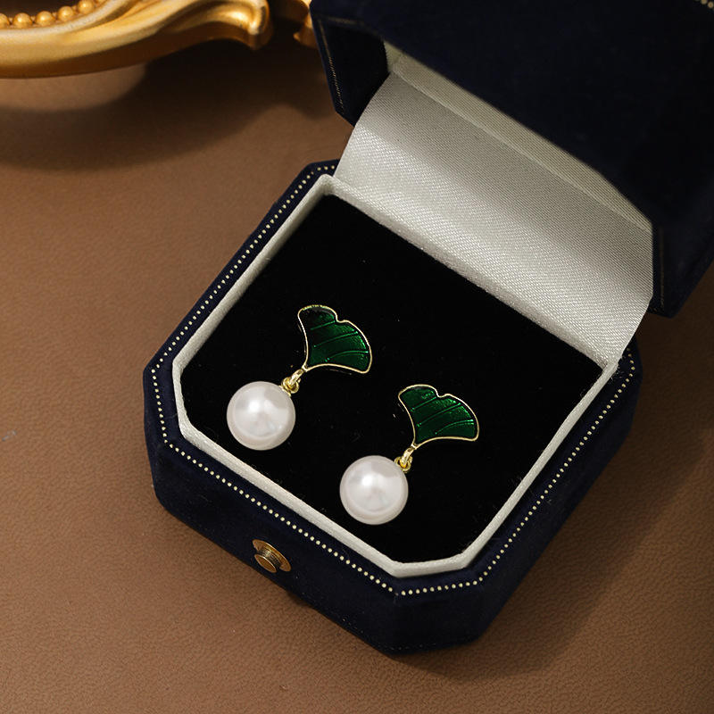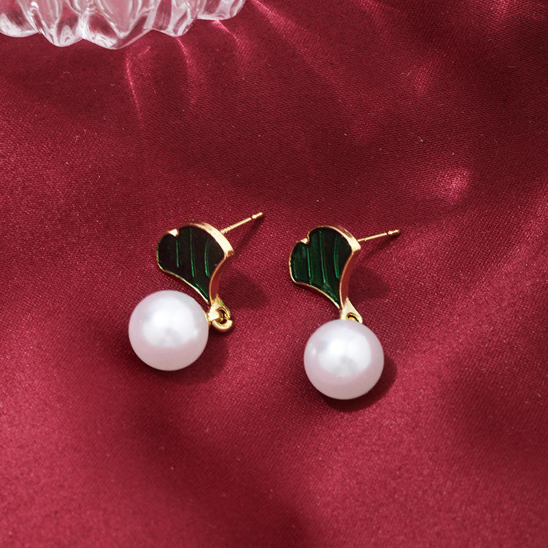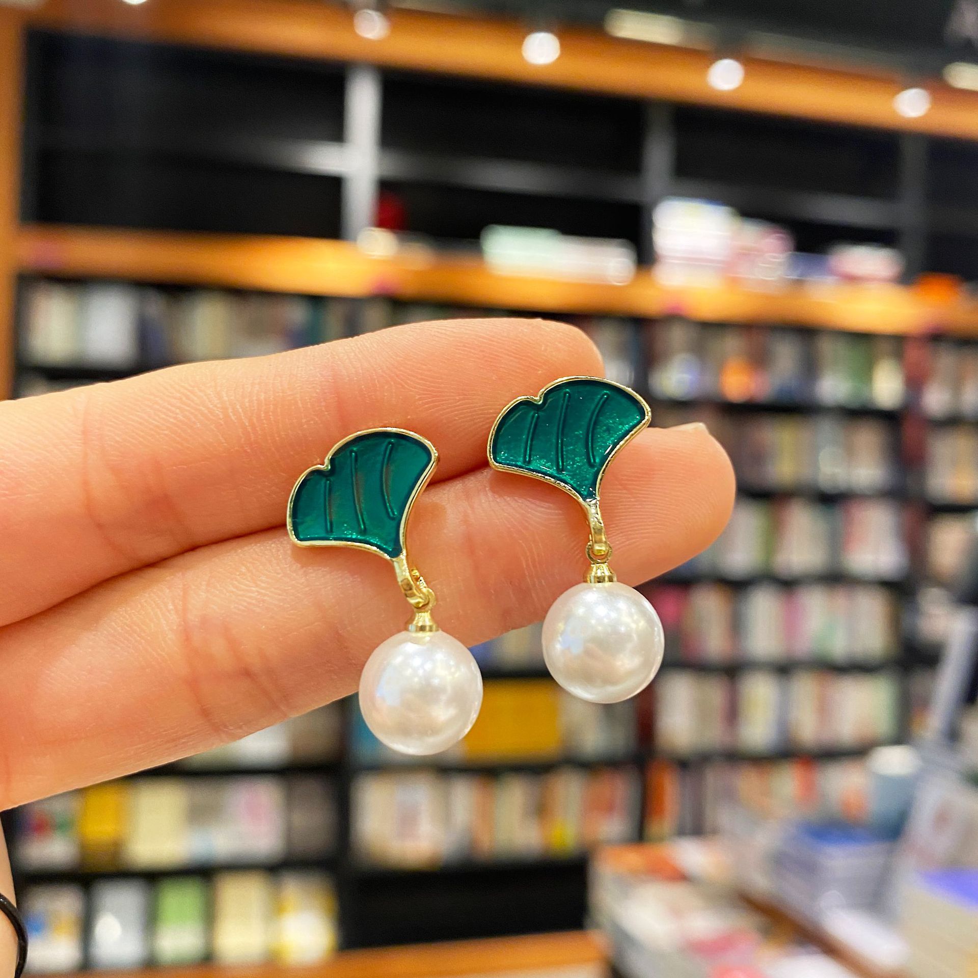 Japanese & Korean Fresh Ginkgo Leaf Pearl Earrings – Elegant & Trendy Fashion Jewelry