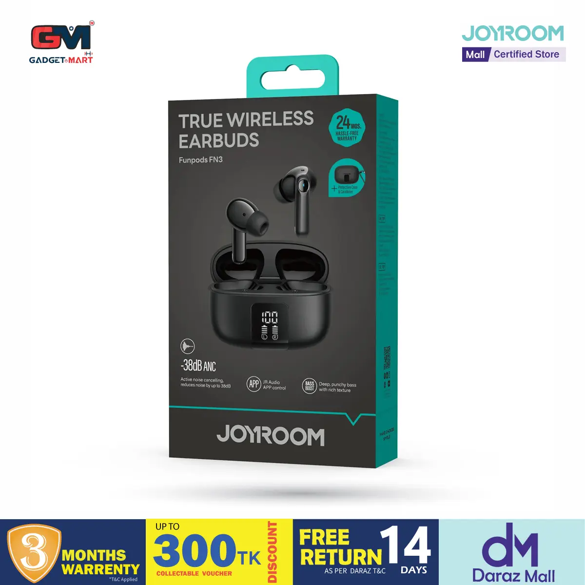 JOYROOM JR-FN3 ANC+ENC Active Noise Cancelling Wireless Earbuds - Black