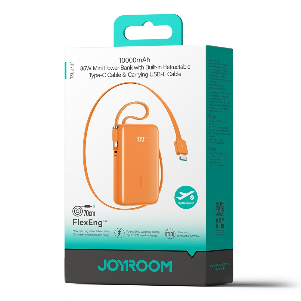JOYROOM JR-PR2L 35W Mini 10000mAh Power Bank with Built-in Retractable Type-C Cable + Lightning Cable